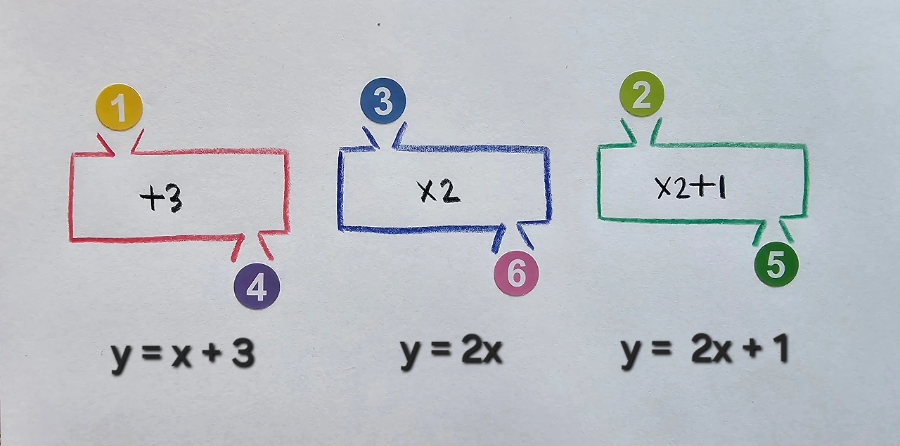 근데 사다리타기 게임에는 상자가 없잖아요. 식도 없고 입력하는 수도 출력되는 수도 없는데 어째서 함수라는 걸까요? 규칙이 있거든요. 사다리타기 게임에서는 '가로선'이 규칙이에요. 가로선을 아무리 많이 긋는다 해도 그 가로선 덕분에 하나에 하나씩만 나오게 됩니다.