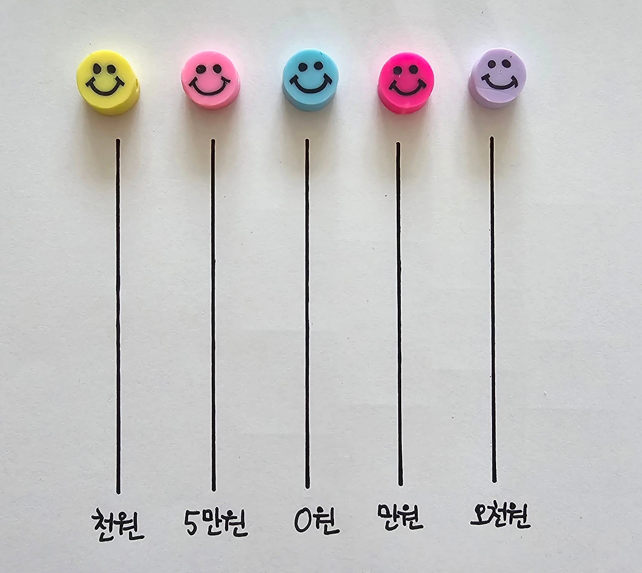 이왕이면 0원에 걸리기를 바랄 거예요. 5만 원을 간절히 원하는 사람은 아무도 없겠지요. 그러다 0원에 여러 명이 몰리면 어쩌죠? 5만 원에 아무도 당첨되지 않을 수도 있잖아요. 그러면 정산에 차질이 생깁니다. 게임을다시 해야 할까요?
