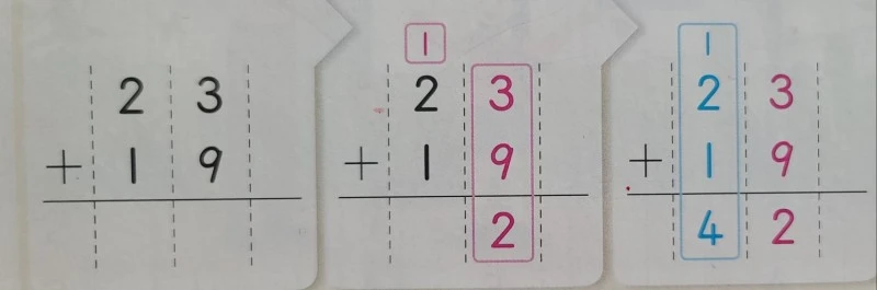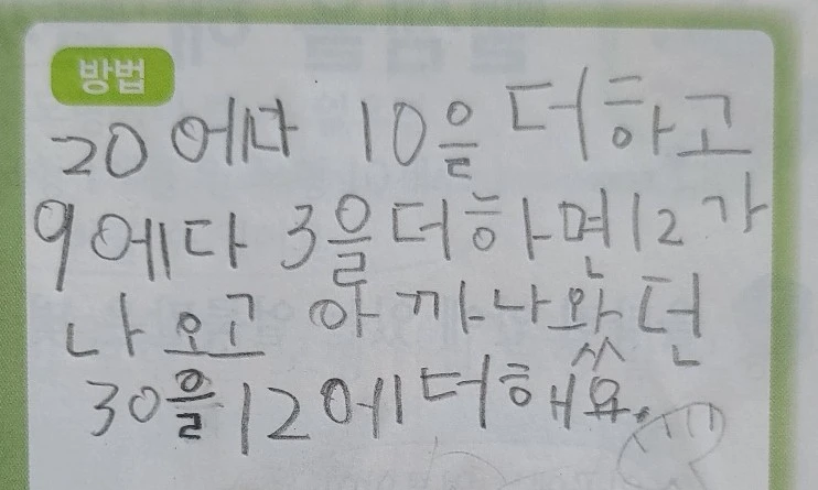 저희 아이는 십의 자리는 십의 자리끼리, 일의 자리는 일의 자리끼리 더했어요.