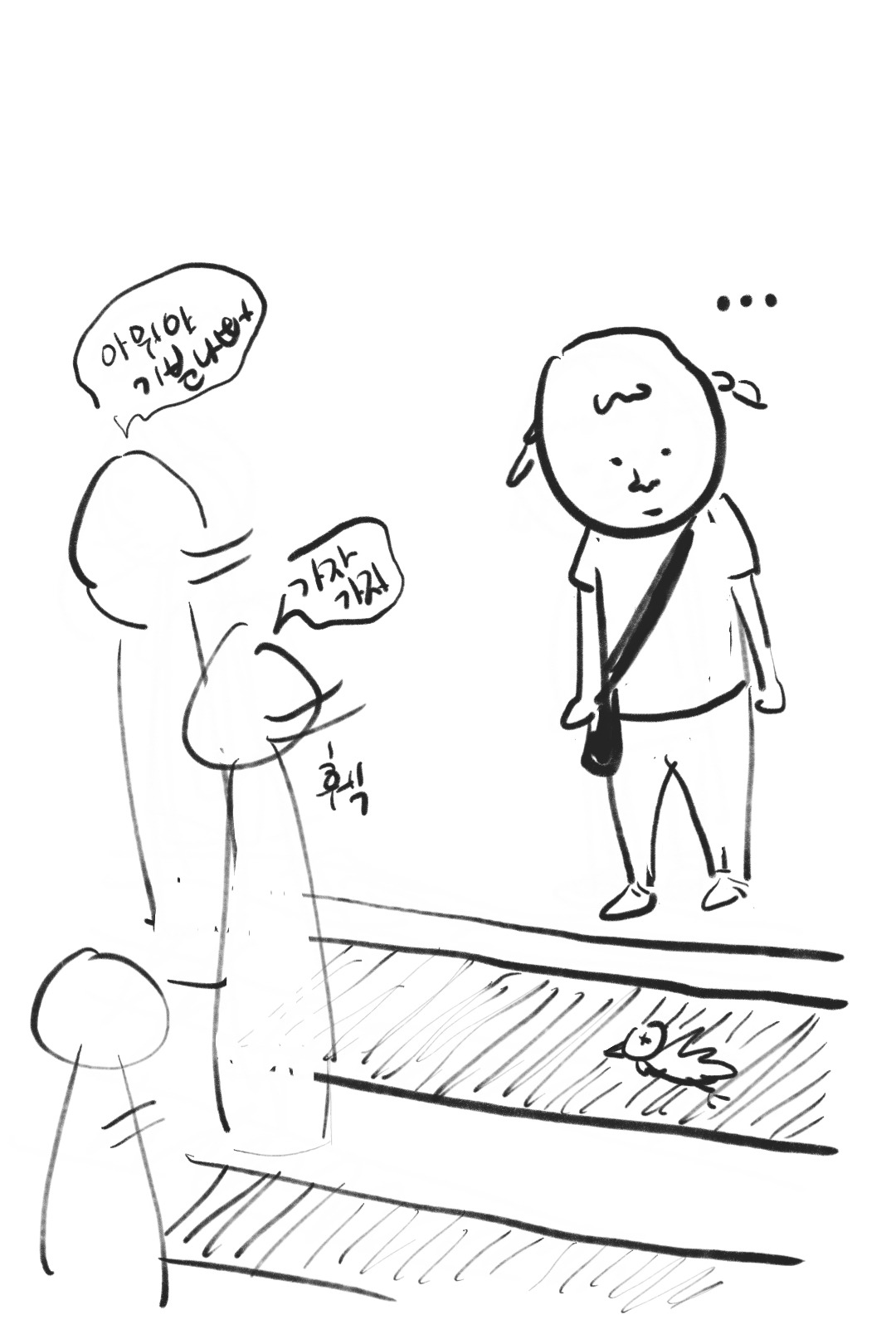 횡단보도 앞에 죽어있는 비둘기가 슬펐다.
