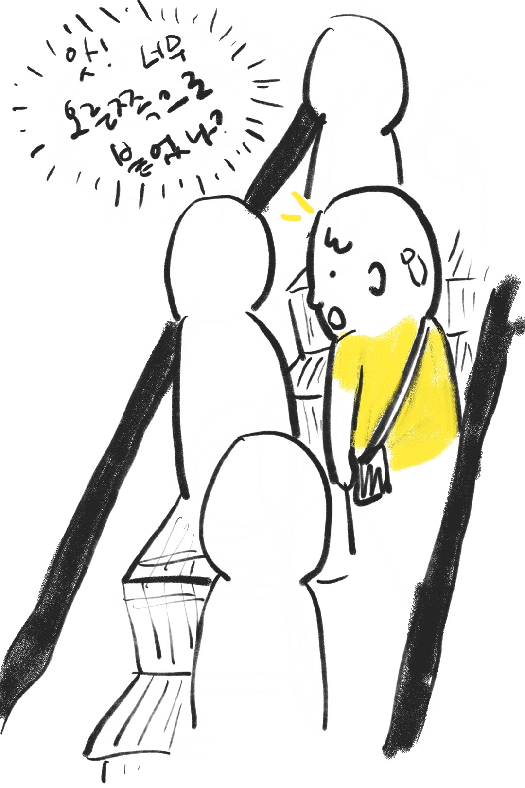 오른쪽에 붙어 서면 안될 것 같은 느낌이다