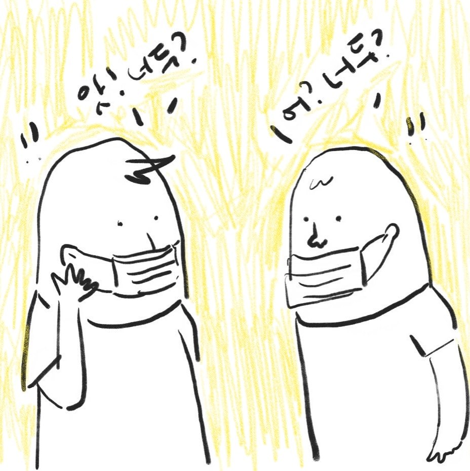 함께 마스크를 끼고 있는 옆에 있는 낯선 누군가,