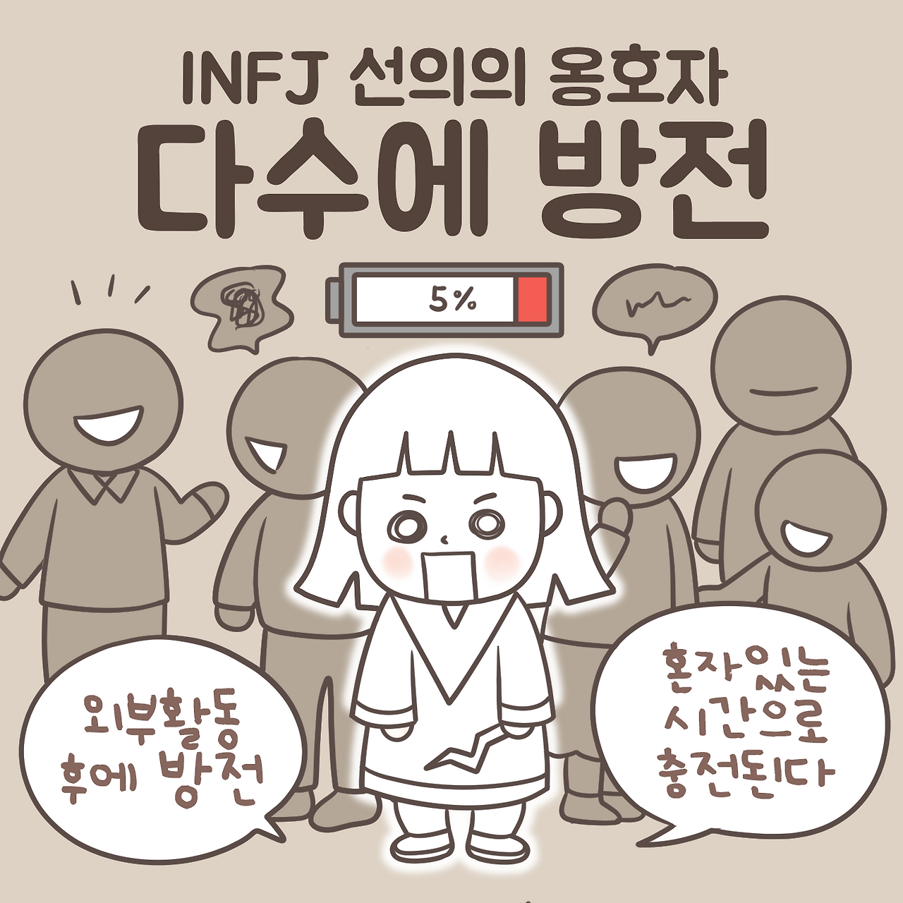 가장 흔치 않은 성격유형으로 전체 인구의 약 1% 정도밖에 되지 않는 드문 유형 INFJ(인프제)인데 내 주변에 다 있는 걸까? 인스타그램에 인프제 게시글을 올렸는데 댓글의 절반 정도가 '저도 인프제 에요'였다. 같은 공감대를 가진 사람들에게 끌리는 이유인지 이것을 유유상종이라고 하는가 보다.