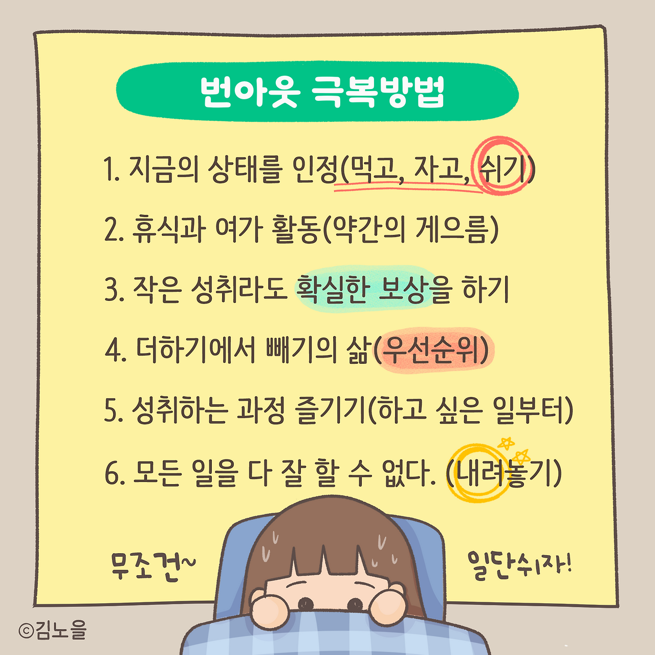 꼭꼭 쉬기로!! 번아웃에는 꼭 쉼표 챙기세요♡