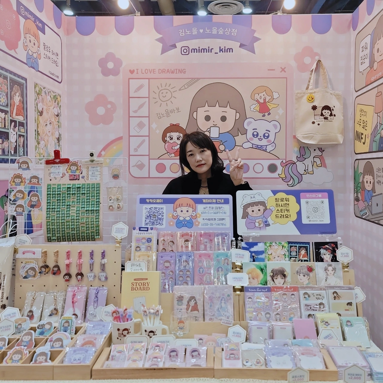 김노을답게, 나다운 메시지를 담은 그림으로 대중에게 사랑받고, 굿즈도 만들고 인기작가가 되고 싶은 열망이 생겼어요. 다음에는 국내뿐 아니라 해외 페어도 참여해 보고 싶어 졌어요. 우울증을 이기려고 그림 그릴 때는 "이모티콘 하나만이라도 제대로 그렸으면 좋겠다" 하고 울면서 매일 그렸는데, 이제는 당당하게 내 꿈을 말하고 더 큰 꿈을 가지게 되네요^^