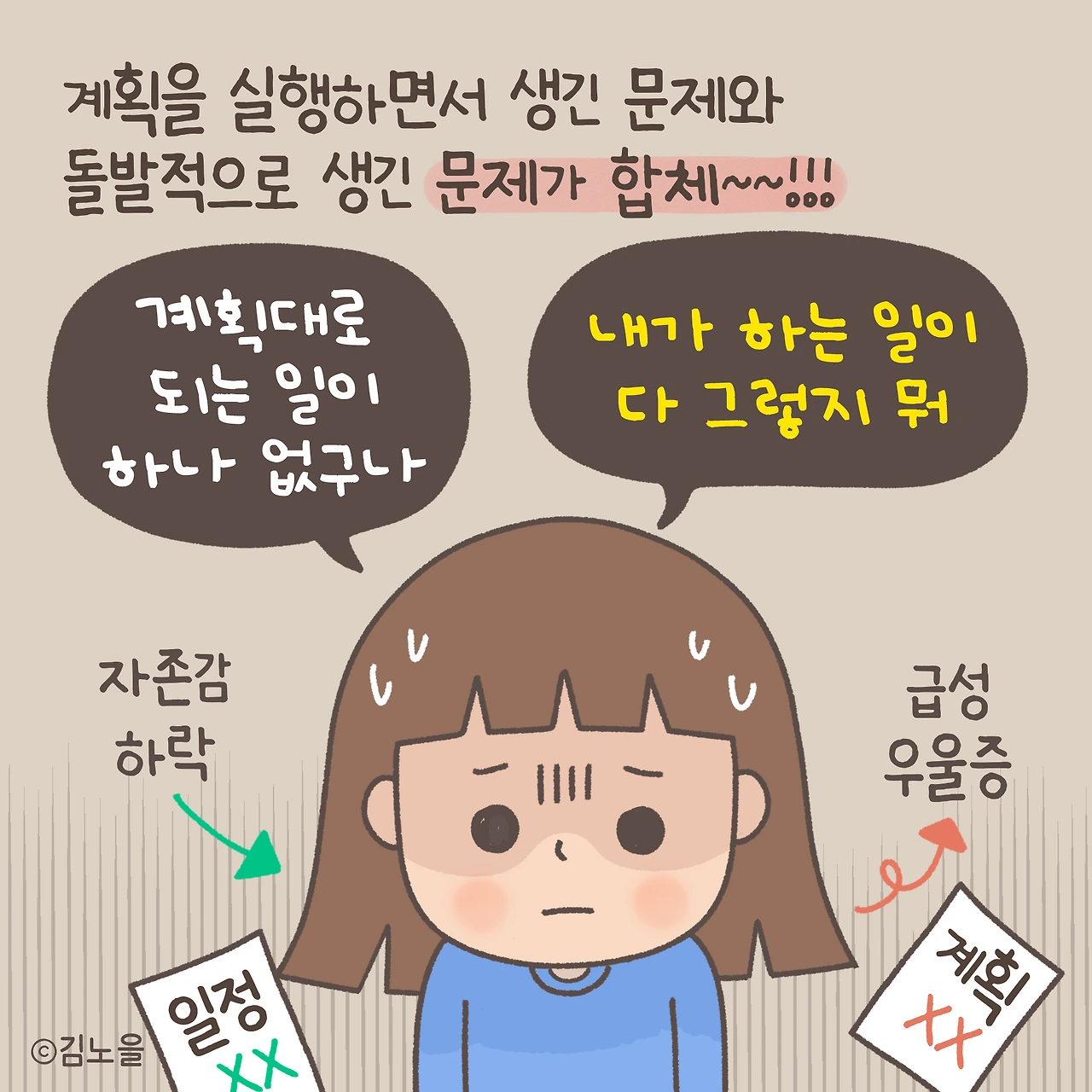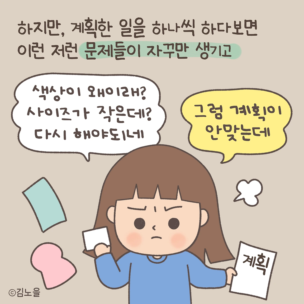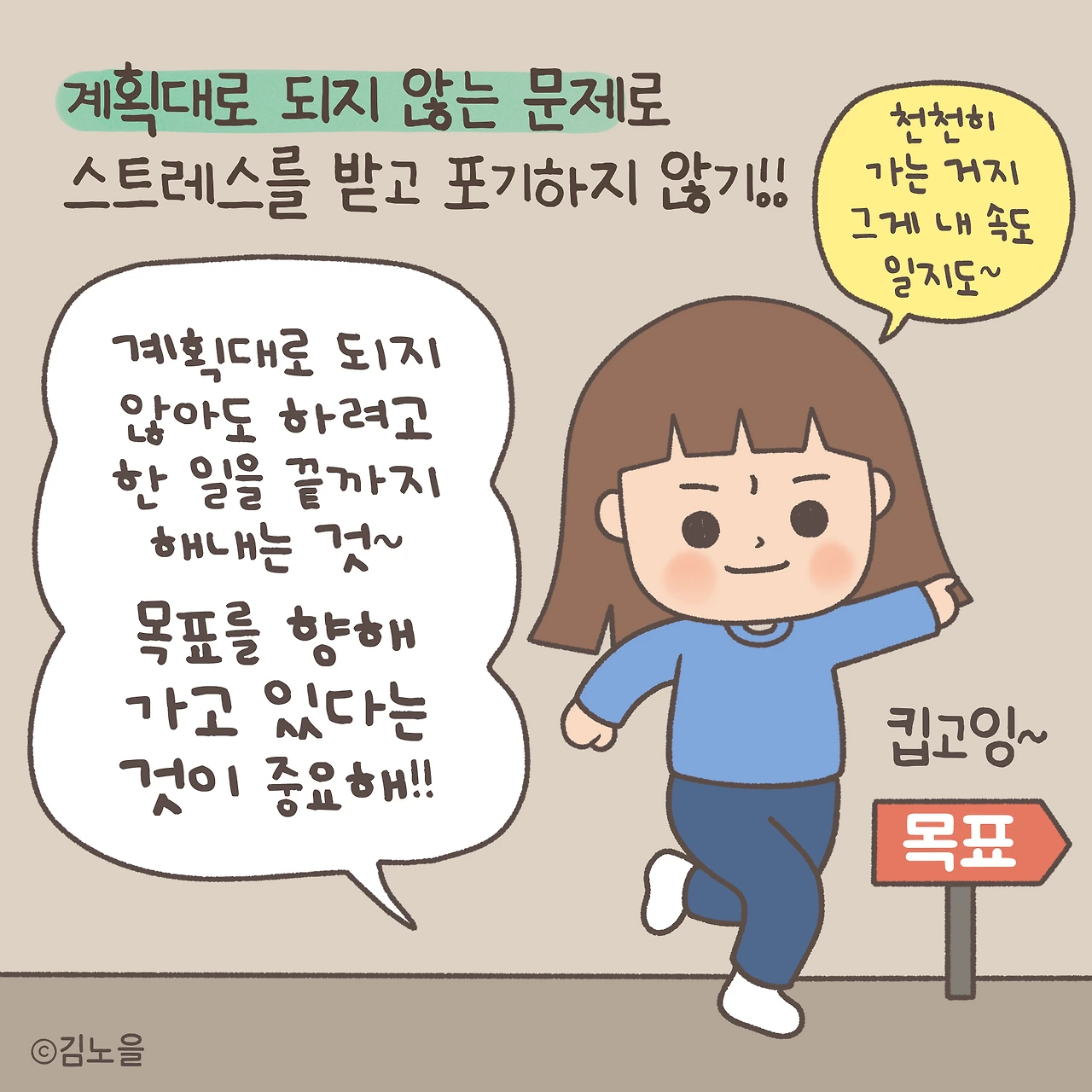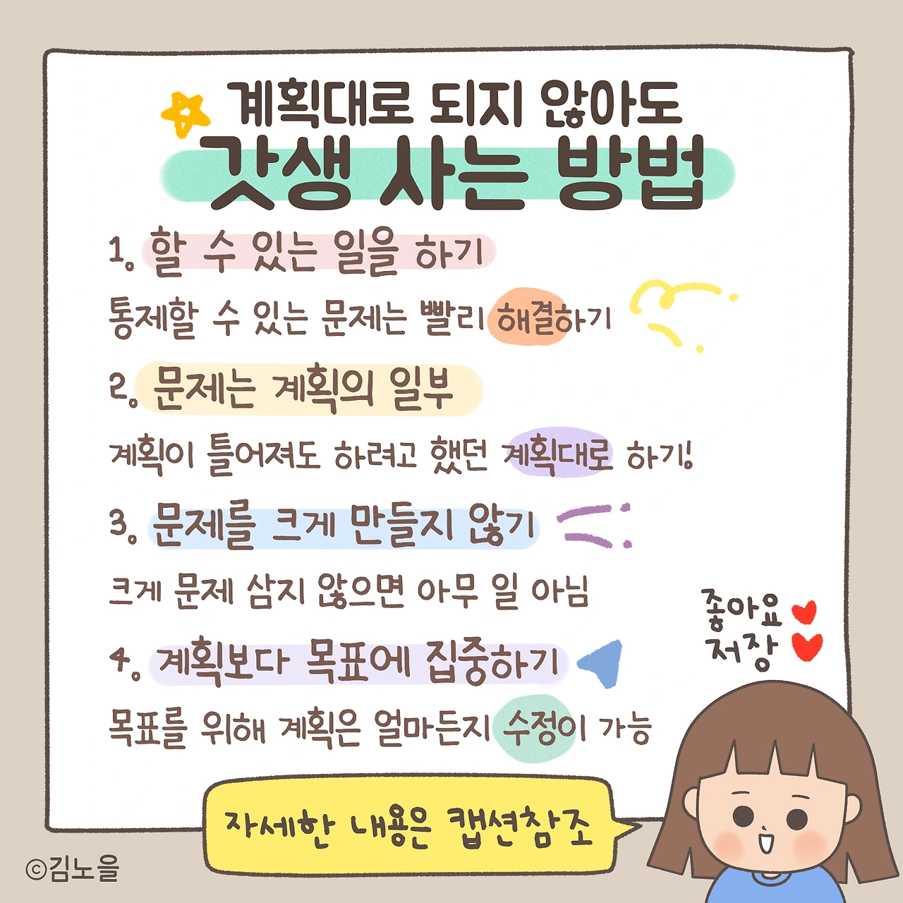 계획대로 되지 않는 문제에 휘둘리며 스트레스받고 포기하지 않기. 계획은 계획일 뿐이고 실행하면서 생기는 문제는 계획의 일부로 인정!! ⠀ ⠀