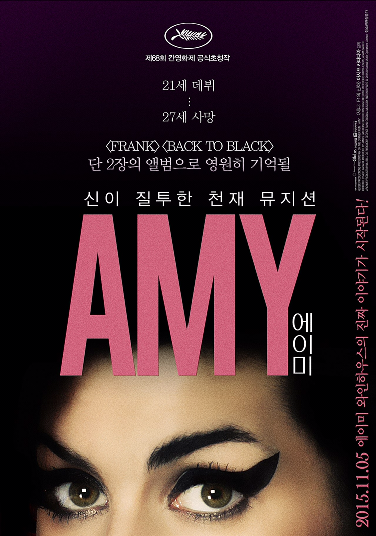 널리 기억될 모습은 부풀린 머리에 치솟은 아이라인의 기행을 일삼는 뮤지션일지라도, 사실 순연한 에이미 와인하우스란 이렇게 담요를 뒤집어쓰고 수줍게 웃는 순한 아이가 전부였을지도 모른다. 결국 에이미 와인하우스가 기억되는 것은 두 장의 히트 앨범을 통해서겠지만, 포스터 문구처럼 신이 있다면 정말 에이미 와인하우스를 질투했을까? 오히려 영화를 본 뒤 포스터를 보고서는 그 삶을 마지막 순간까지 나의 이 마음 저림과 한 순간의 눈물을 위해 소비하고 있는 것만 같아 죄책감이 느껴질 정도였다.