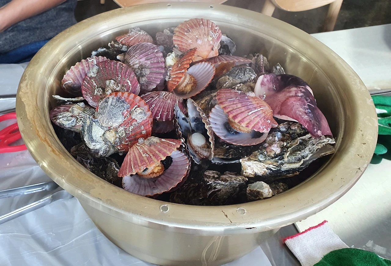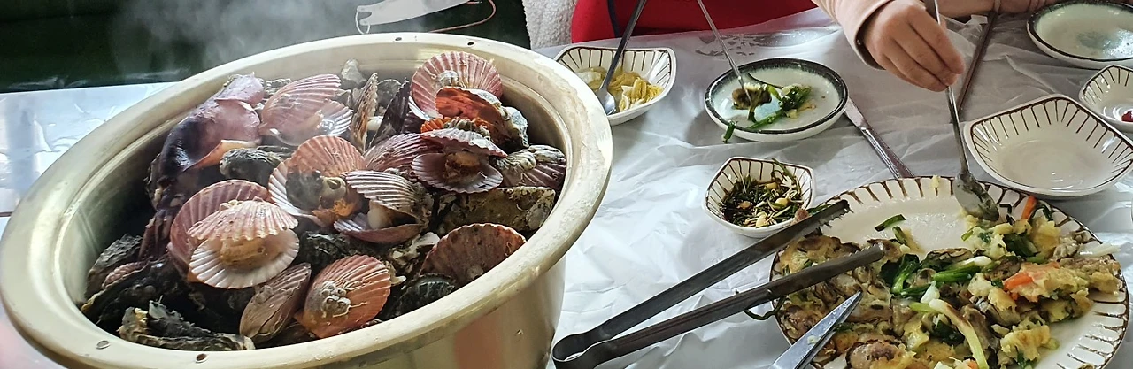 생굴도 먹고 싶었지만 아직 날씨가 추워지지 않아서 비추라며 추천해주신 것이 굴찜. 아이들을 위해 가리비도 풍성하게 쪄주셨다. 동네에서 파는 굴전은 굴 몇개 들어가고 그냥 부침가루 부침개인데 여기는 빈틈없이 굴이 들어가있었다. 허허. 역시 맛있었다.