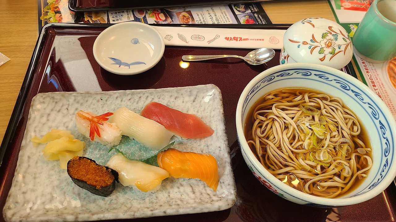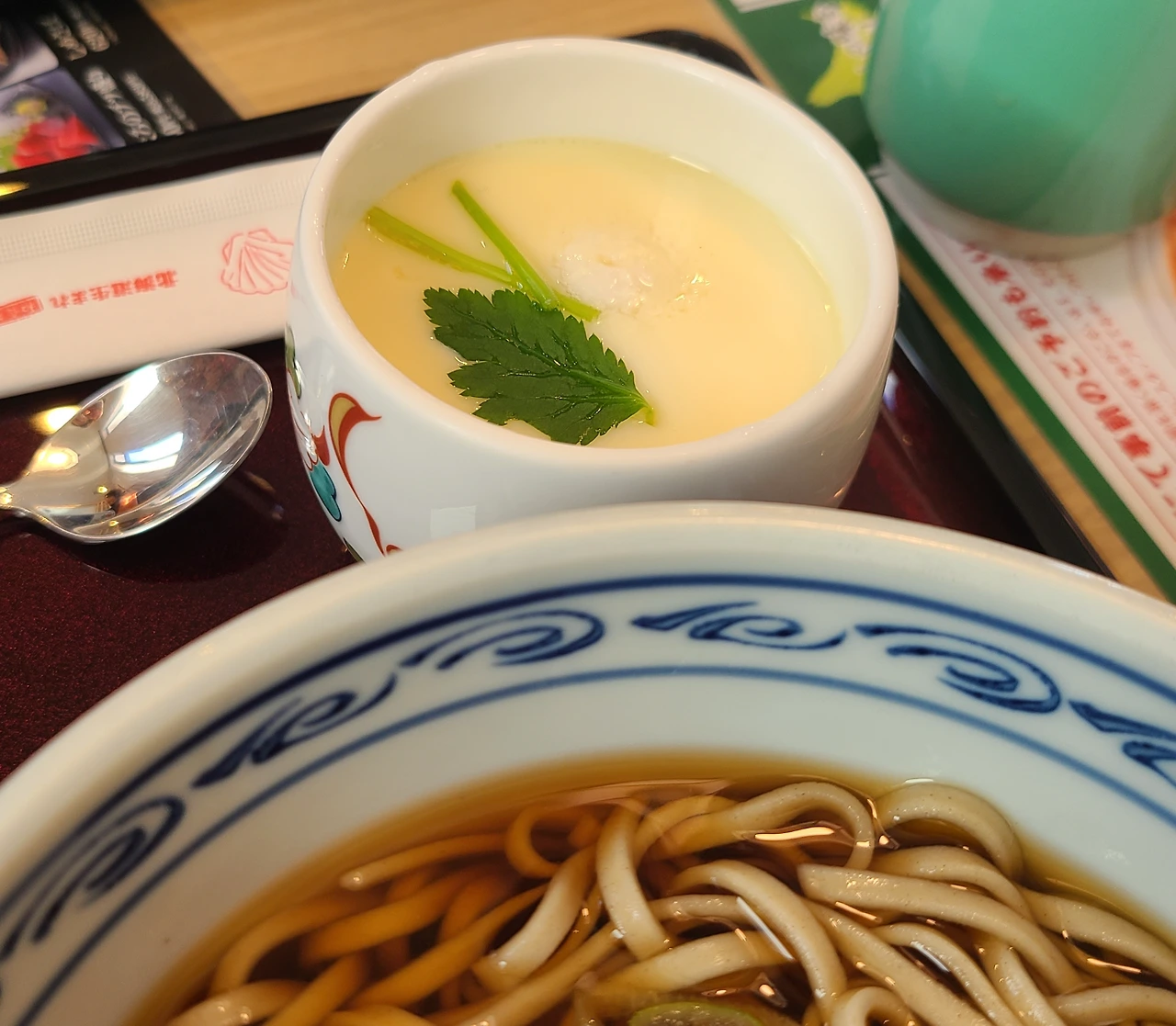 첫 끼니. 온모밀은 처음먹어보았다. 온모밀도 냉모밀만큼이나 맛있는 음식이었다. 저 계란푸딩(?)이 별미였다.