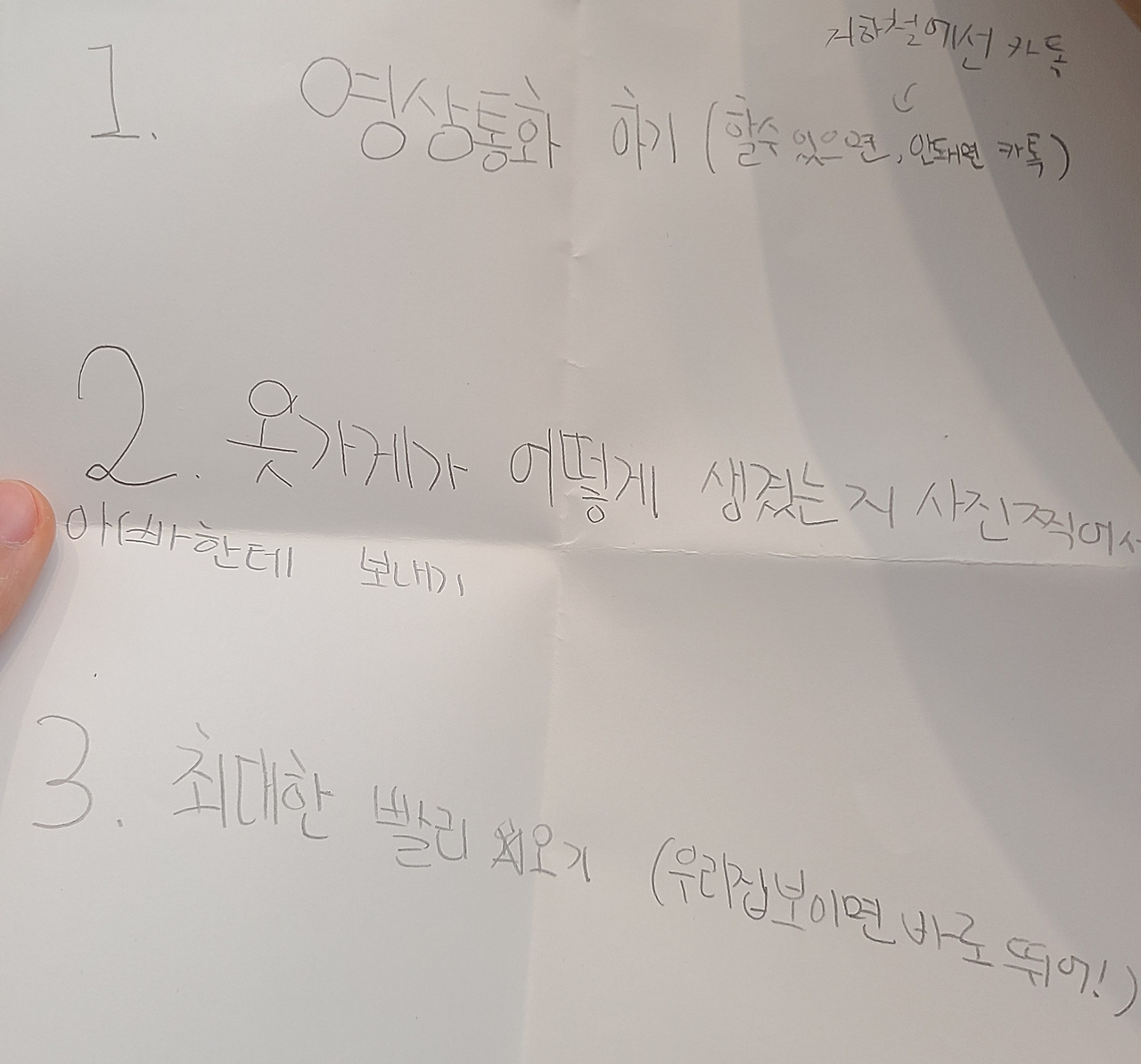 으네의 옷이 좋아서 오신 분들을 위해 옷이 구겨지거나 떨어지지 않게 조심조심 왔다갔다하며 주문들어오는 옷들을 찾아 밖으로 날랐다.