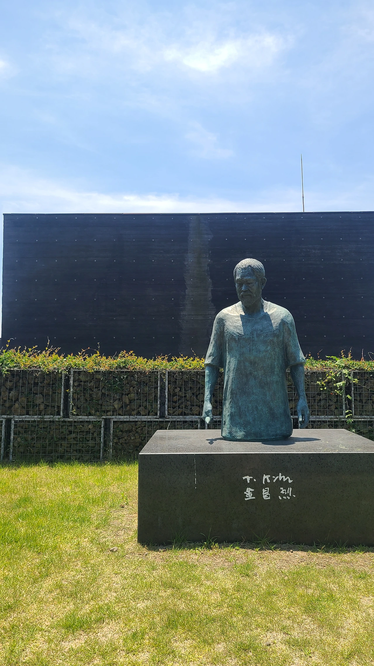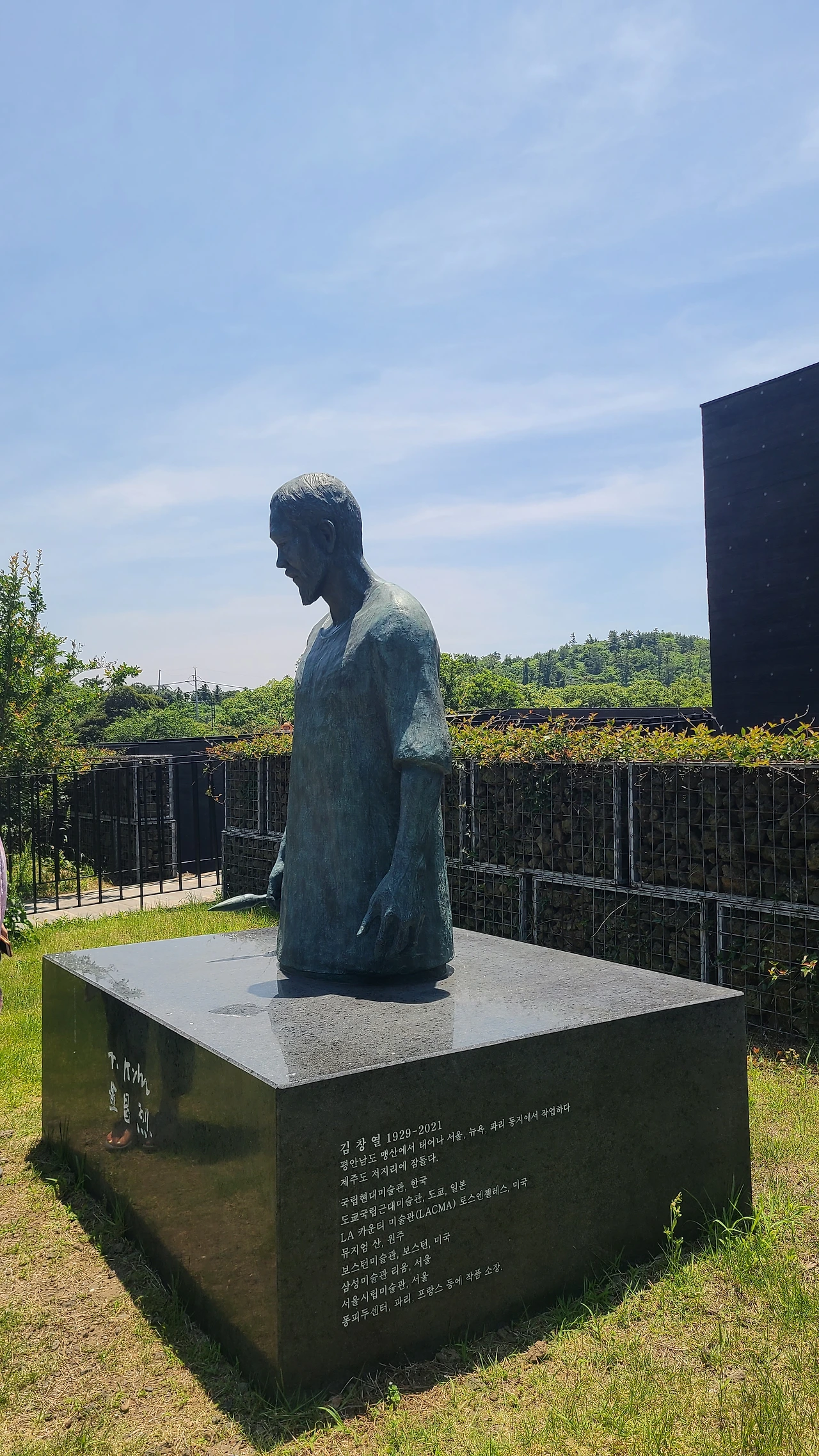 약간 무서워보이긴 하지만, 붓을 들고 있는 김창열화백의 동생이 있고, 뒤쪽으로는 그의 수목장도 있다. 날씨도 너무 좋았고 풍경도 너무 좋은 곳이었다.