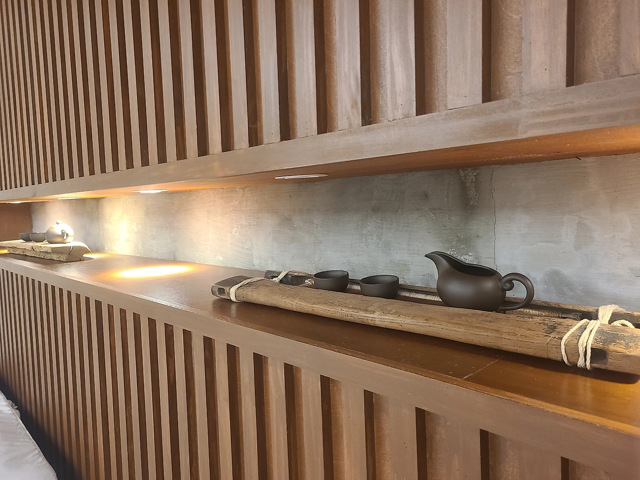 내부도 갤러리 못지 않게 아름다웠다. 나무색과 돌색으로 채워진 공간은 제주스러움을 한 단계 더 끌어올려주었고, 거실에서 폴딩도어를 열면 땅과 대나무가 보여 마음이 차분해졌고, 외부엔 자쿠지가 있어 물을 채워 몸을 담그면 신나는 여행 중에도 쌓이는 피로를 풀어주었다. 어른 여행의 아주 막대한 장점!