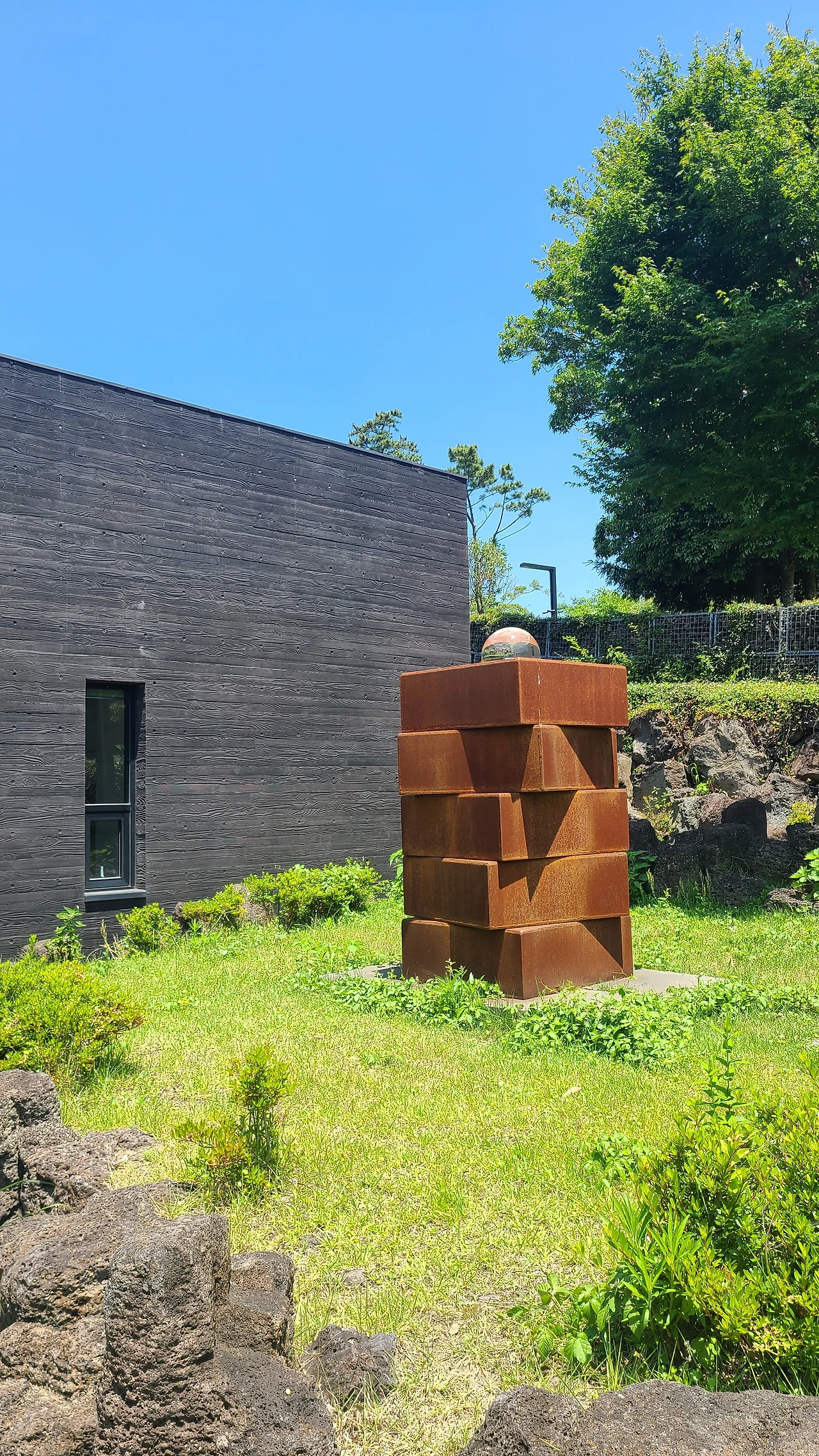 입구에서도 물방울의 느낌이 찬란하다. 6월 제주의 맑은 날씨와 어우러져 너무 멋있는 풍경이었다. 이 미술관은 2016년에 개관해서인지 깨끗하고 넉넉하고 아름다웠다. 그의 미술관 또한 그의 작품의 일부인 것 같은 기분.