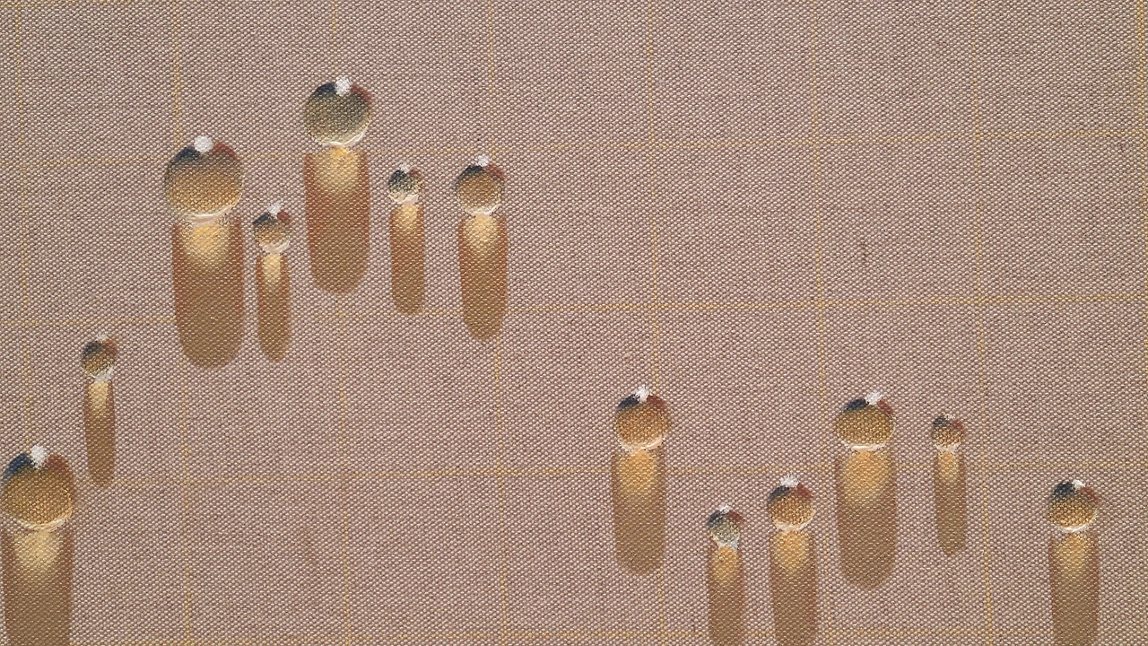 그의 물방울은 캔버스위에서, 한자위에서, 모래 위에서 등 다양한 배경과 모습으로 변주해갔다.