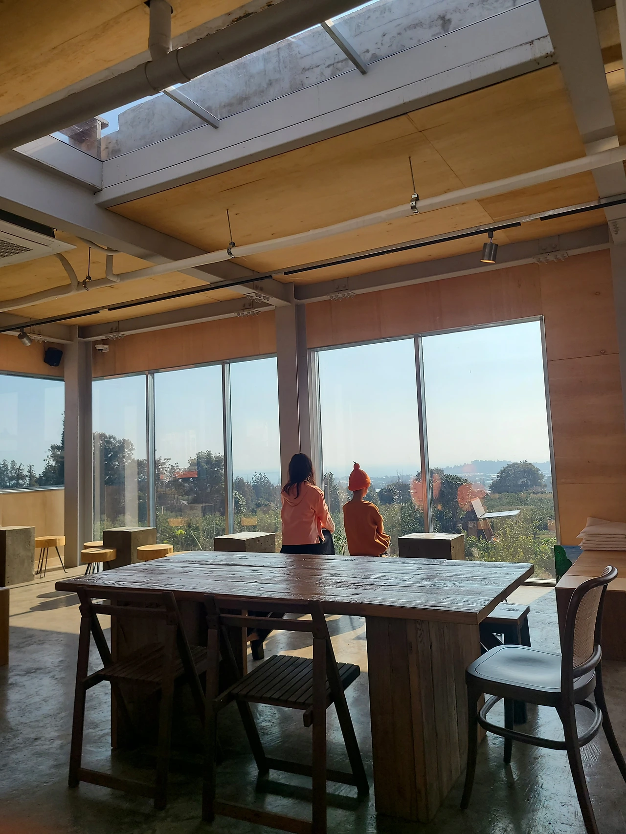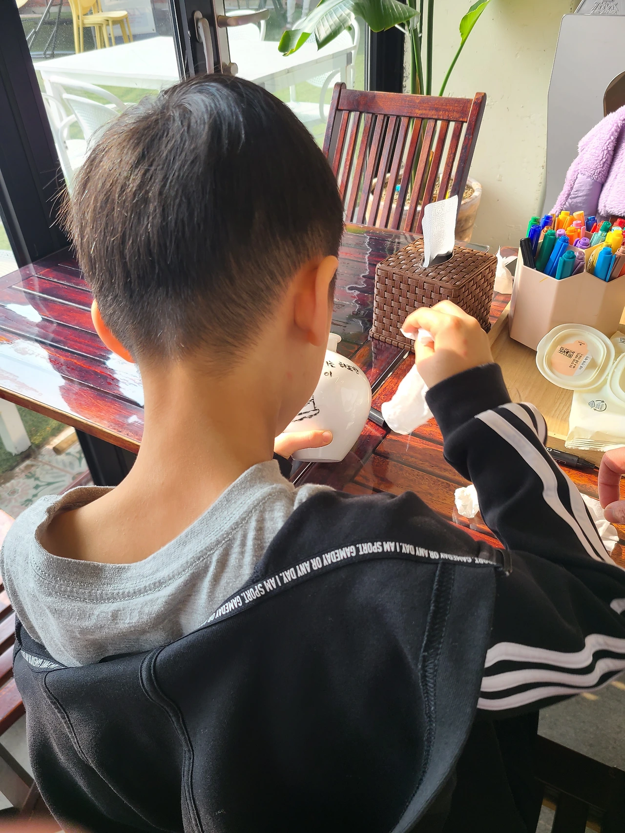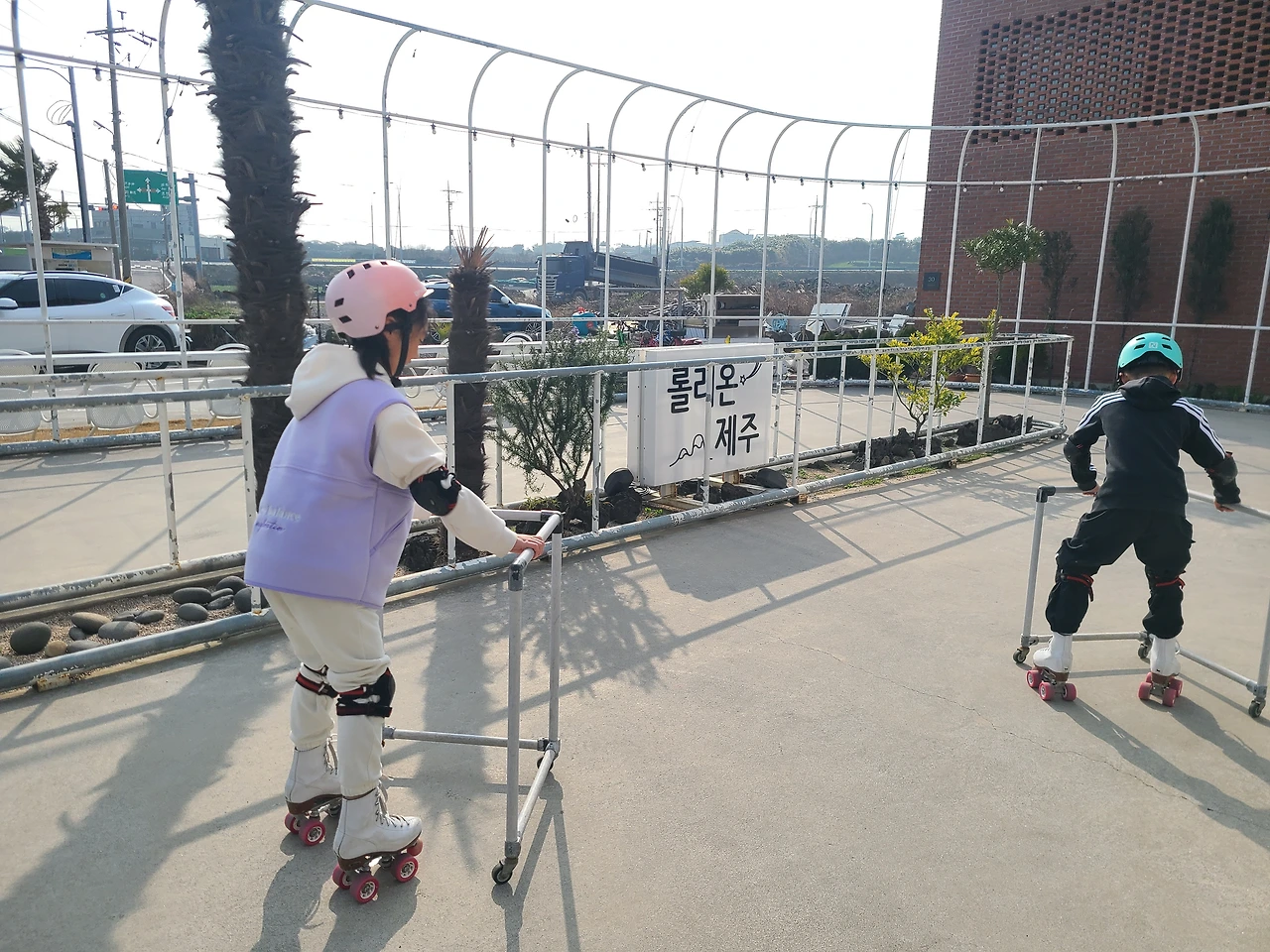 도자기에 채색을 하는 체험이 들어있는 카페를 아이들이 좋아할 것 같아서 신청했는데 그 카페에서는 롤러스케이트도 탈 수 있었고 방방이도 있고 오락실도 있었다! 아이들뿐 아니라 나도 완전 신나게 놀았고, 엄마는 요즘 젊은이들이 오픈하는 카페엔 이런 것도 있느냐며 신기해하셨다. 식당 주변이 바다, 카페뷰가 귤밭, 볼거리 많은 시장통에 있던 고깃집 등 제주에 오면 올레길만 걸었던 엄마에게 새로운 제주를 만끽하기에 좋은 곳들이 주변을 이루고 있어서 체험단이 여행을 예상치 못하게 더 풍성하게 만들어주었다.