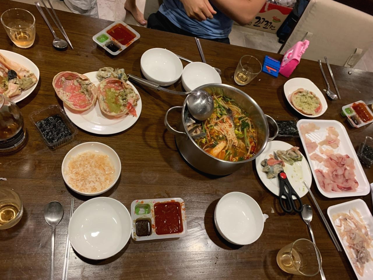 찜 비용, 회 쳐주시는 비용..등등해서 총 18만 원정도 들었던 것 같다.