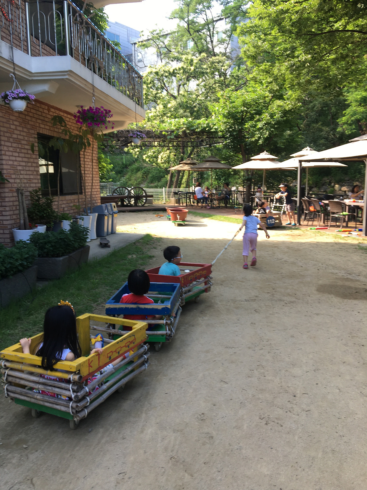 앞에 언급한 곳들은 바깥에도 자리가 있어서 괜찮았는데, 여긴 식사를 주로 하는 곳이라서 실외 자리가 있는지 모르겠네요. 아이들 식사 나오기 전까지 놀리기 좋았습니다. 사진은 5월초 정도였던것 같아요.