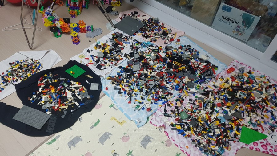 그 커다란 플라스틱 박스 안에 레고만 들어있던 건 아니었다. 쓰레기들 골라내서 버리고 때가 꼬질꼬질 껴있는 것들 야밤에 세척하고 말리느라 펼쳐놓고, 너무 더러운 블럭도 버리고 난리도 아니었다. 하지만 아이들의 픽은 저 옆에 천재블럭이었지 레고가 아니었다. 8세와 6세에겐 아직 어려운가 싶었는데, 8살 따님에게 여쭤보니 너무 작아서 끼웠다 뺐다 하는 게 귀찮단다.