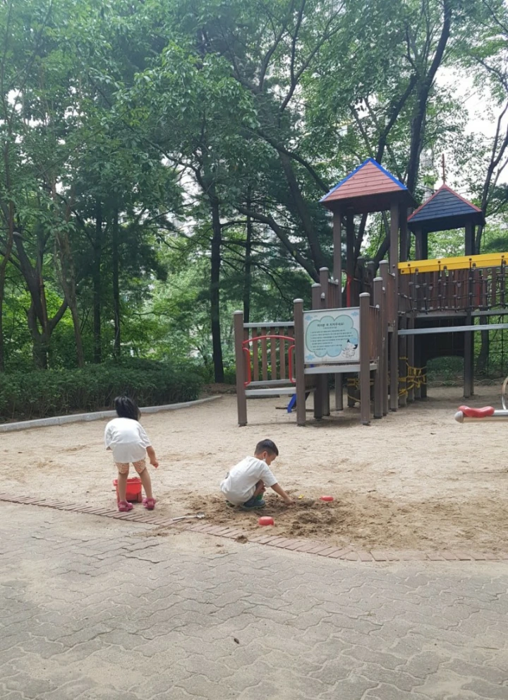 다른 날은 모래와 씽씽카와 함께 놀게 해 주었다. 남편 데리러 갈 시간이 다 되어 가자고 했더니 아빠 데리러 못 간다고 카톡 보내란다. 워낙 애들이 이 동네를 잘 알게 되다 보니 어디로 가면 뭐가 있는지 다 알아서 놀면서도 다른 놀 계획을 다 세우고 있었다.