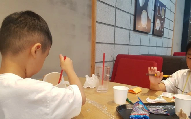 엄마가 오시지 않는 날은 남편이 퇴근할 때까지 시간을 어떻게든 소비해야 하니까 고구마라떼 파는 카페에 가서 잠시 시간을 가졌다. 돈을 써야 교통정리가 되는 아이들이었다.