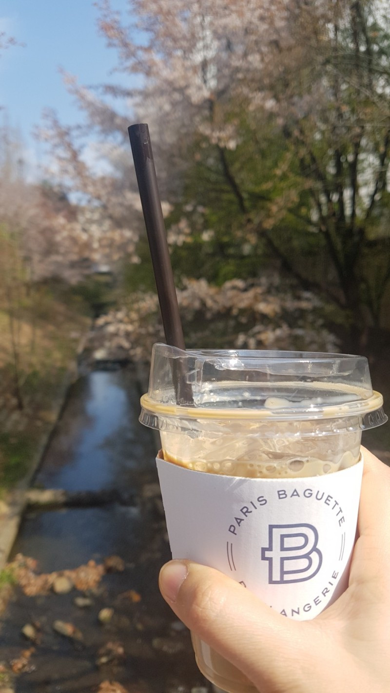 벚꽃은 우리를 유혹하지만 유혹만 당할 뿐 갈 순 없었다. 많은 지방축제들이 다 취소되었고, 동네에 핀 벚꽃만 바라볼 뿐이었다. 샷 추가한 커피와 함께.