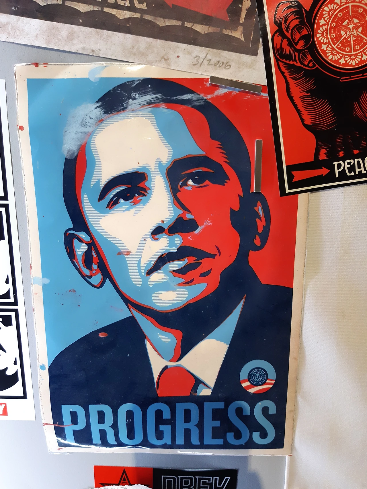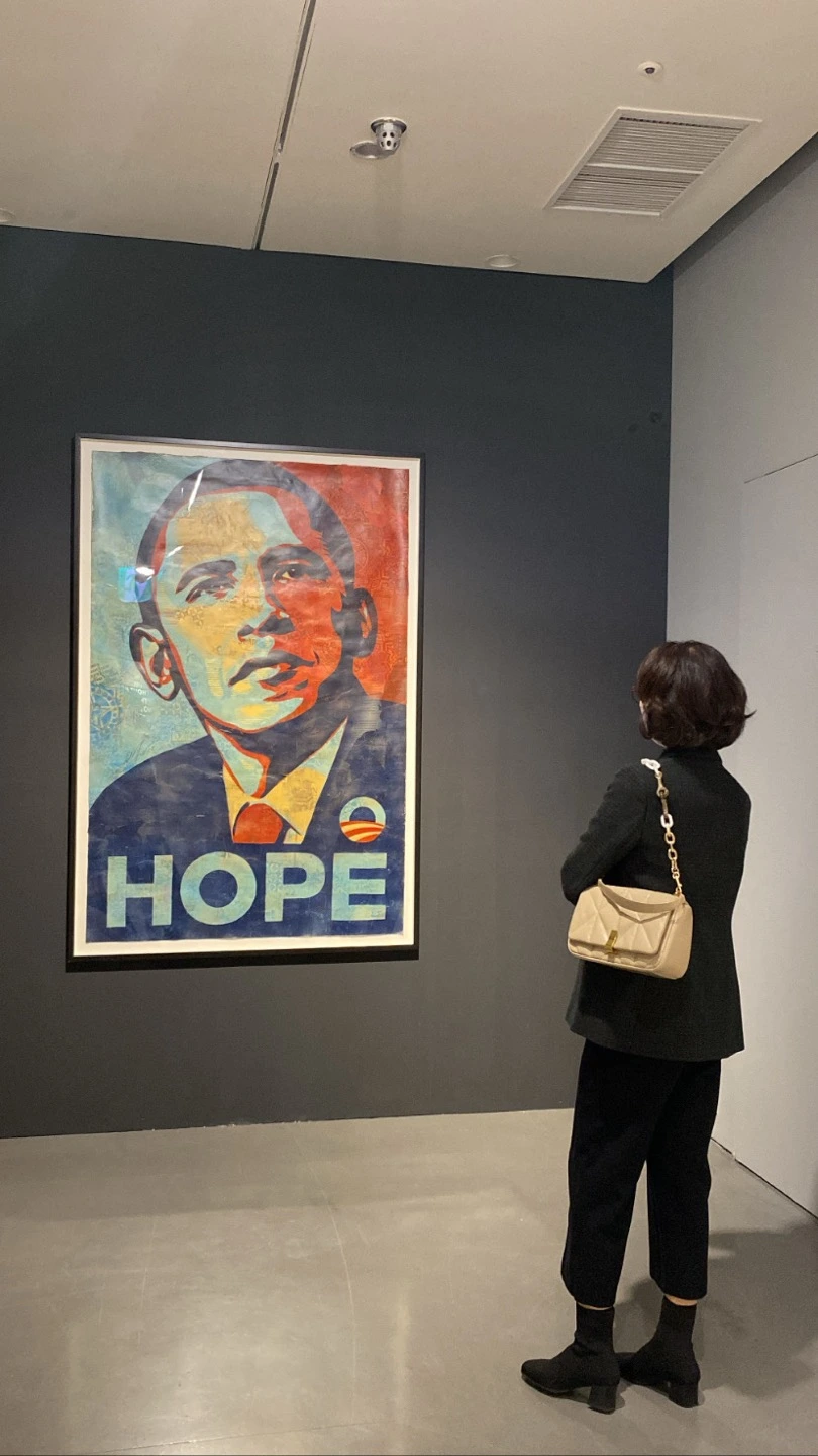 그의 가장 대표적인 작품은 2008년 미국 대선 때 오바마의 초상화를 포스터로 이용할 수 있게끔 하면서 대중들에게 유명세를 탔다. 미국의 미래가 없을거라는 암담한 상황에서 그는 오바마를 통한 진보(PROGRESS)만이 그것을 헤쳐 나갈 유일한 방법으로 보았던 것이다. 이 작품이 탄생하게 된 배경과 기법을 알고 나니 더욱 흥미로워졌다. 예술가이지만 사회가 더 좋은 방향으로 바뀌기를 바라는 간절한 바램을 담아 행동하면서 미래를 꿈꾸려는 그의 정신이 존경스럽기까지 했다.