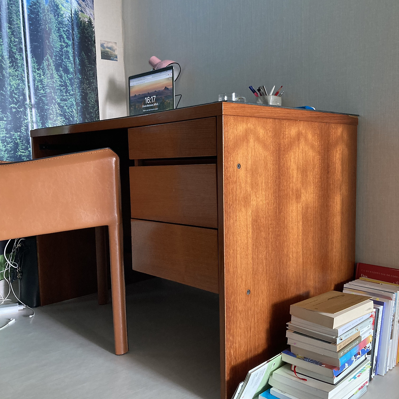 H는 오자마자 달라진 몇 가지를 알아차렸다. 나는 대놓고 화분이 많아진 베란다는 보여줬지만 별 반응이 없었다. 다음엔 당근에서 1만 원 주고 득템 한 책상을 보라고 말했다.