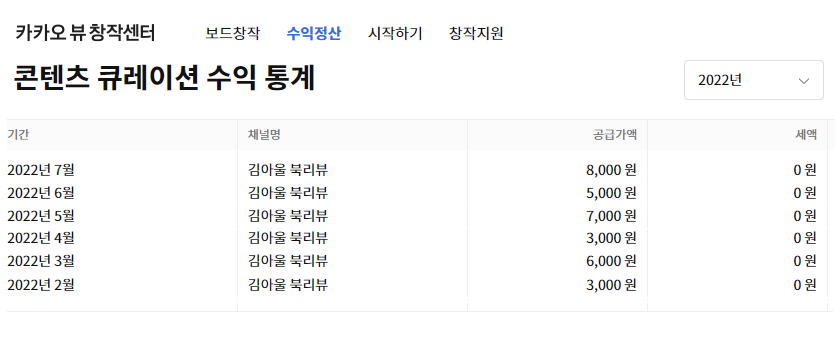 10개월 차에 다다른 나의 수익은 꾸준히 상승하고 있다. 어떤 사람들은 더 어그로를 잘끈다. 좋은 양질의 콘텐츠를 생산해내고, 다른 글들을 큐레이션 하기도 한다. 내가 정한 규칙 하나는 내 글로만 게시물을 발행하는 것이다. 이 정도면 충분하다. 쓰고 싶은 글을 쓰고, 제목만 한번 더 생각하면 된다. 이런 아기자기한 수입이 글쓰기에 도움이 되는 건 아니지만, 돈 생각과 연관 짓고 싶을 때는 커피 한잔만으로 만족하고 끝내면 된다. 앞으로 한 달에 커피 두 잔이 될지도 모르겠다. 그러나 커피 100잔은 안될 것 같다.