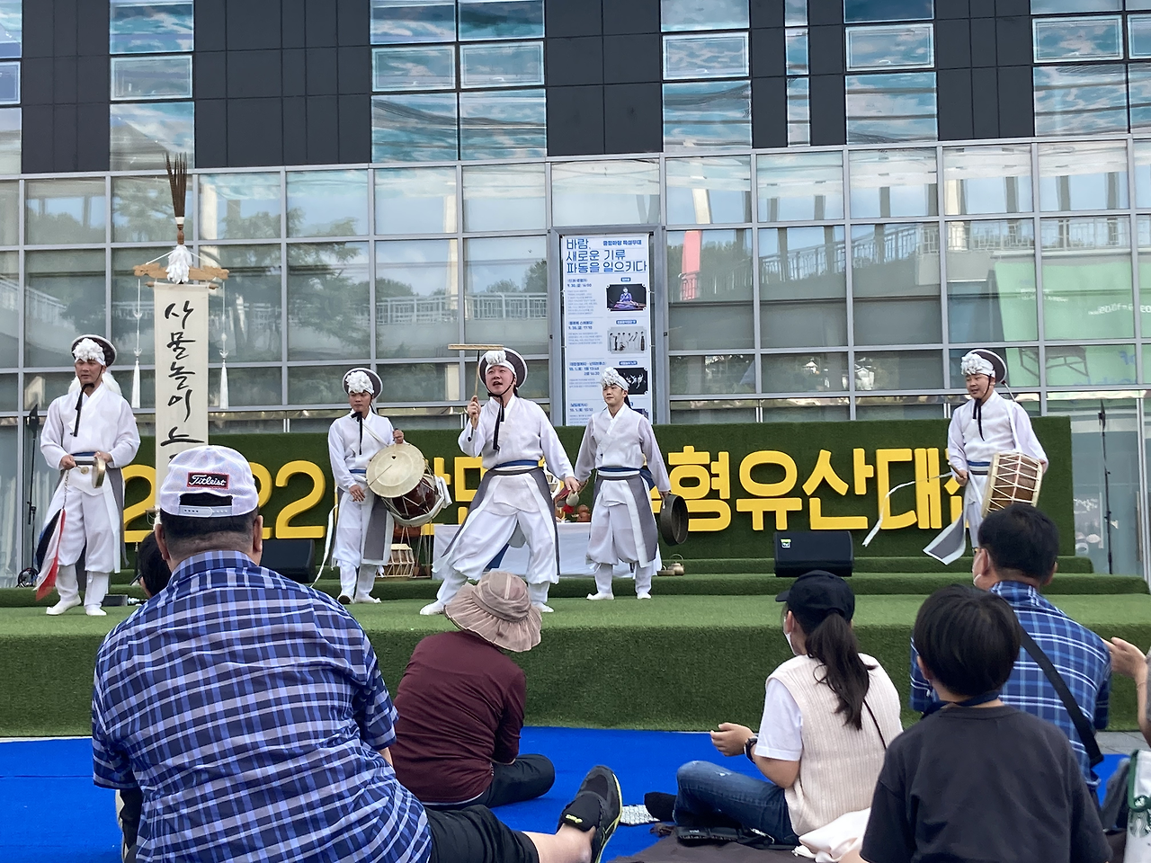 우연히 들린 소리가 행운이었다. 2022 국립무형유산대전이 열리는 장소에 주차할 일이 있다가 연습 소리를 듣고, 시간 되면 가봐야겠다고만 생각했다. 그래서 잠깐 짬이 났을 때 텀블러에 물을 담아서 슬렁슬렁 행사장소로 향했다. 사람들은 시작 전까지 별로 없었고 멀찍이 벤치에 앉아서 보는 둥 마는 둥 시선을 집중하지도 않았다. 혼자라서 공연장 한가운데 앉아 있는 것도 뻘쭘하다고 생각했다.
