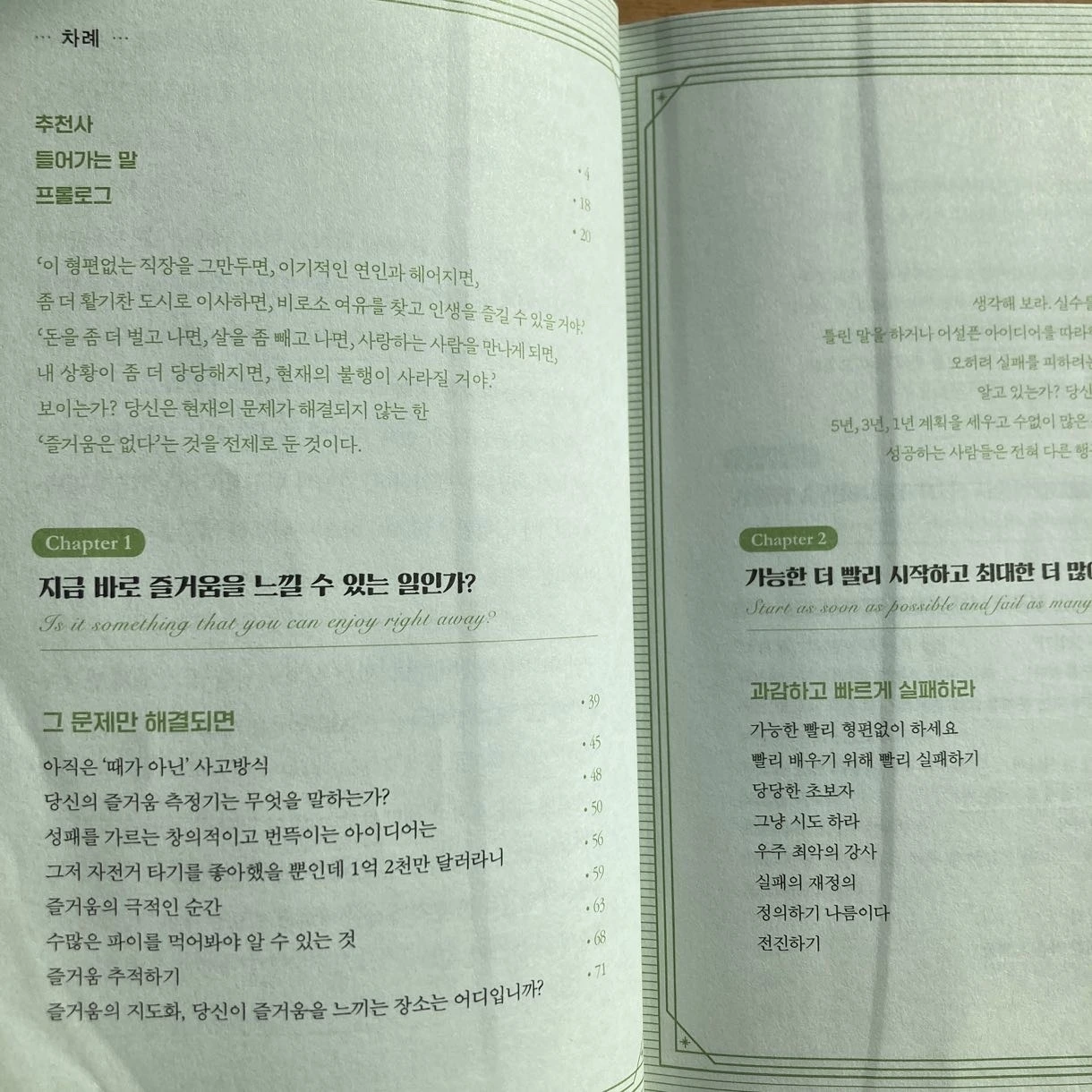 우리나라가 실패에 잔혹한 사회라지만 이제 그런 핑계도 그만할 때가 됐다. 실패에 너그러운 콘텐츠도 넘쳐난다. 실패에 대한 생각을 전환해보고, 실패가 성공에 필수적인 일임을 증명해낸 연구들, 인문학, 사회학적인 인사이트도 허다하다.