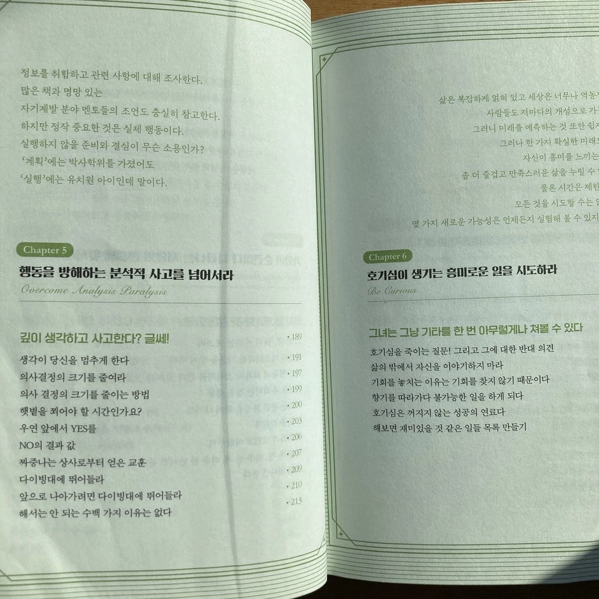 생각만해도 심장이 두근거리는데, 어떻게 해? 일을 벌이지 않으니 마음이 편하다. 꼭 억지로 내 자신을 끌고 나가야 할까? 안나가도 된다. 하던 계획만 꾸준히 해도 성장할 수 있다. 그러나 꾸준히 해서 얻은 기회를 잡아야 변화가 오고, 성장을 할 수 있다. 책에서도 저자가 정말 친절하게 설명해주는지 실패를 하기 싫어하는 이유, 당장 행동하지 않은 이유에 대해서 정확하게 말한다. '어 그거 아니야'