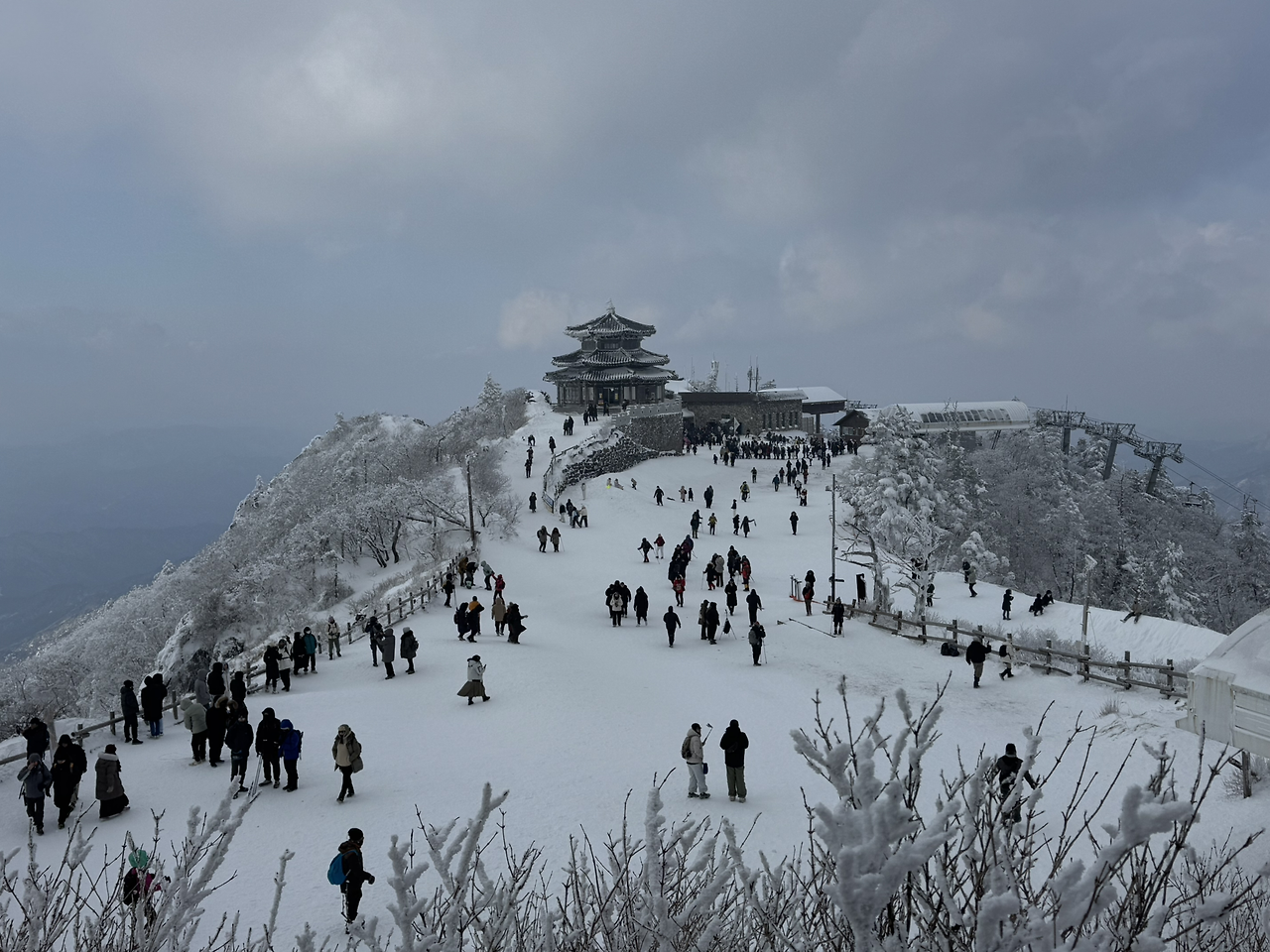 향적봉, 설천봉은 또 다른 풍경이 펼쳐졌다. 꼭대기쯤에는 눈발이 날리기 시작했기에 맑은 하늘은 아니었지만 구름이 눈앞에서 지나다녔다. 핸드폰 카메라의 성능이 아쉬웠다. 대포 같은 렌즈를 메고 오르는 사람들의 마음이 충분히 이해됐다.