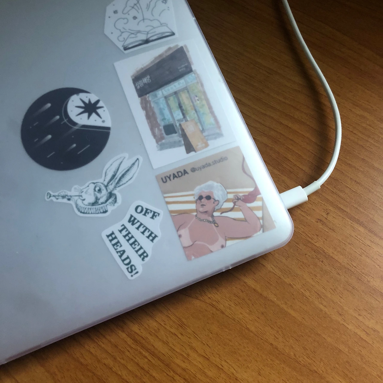 노트북에 붙인 우야다 할매 스티커를 보면서 내가 되고 싶은 할머니를 상상했다. 이 그림을 그린 작가는 제주에서 열린 독립출판물 페어에서 만났다. 자기가 되고 싶은 할머니를 그림으로 그린다고 했다. 구체적으로 상상하는 사람은 아무래도 목표에 도달할 가능성이 높아 보인다. 우야다 할매는 자유롭고 열정적이고 매력이 흘러넘친다. 우야다스튜디오에 가면 할머니가 요가도 하고 우쿨렐레도 연주하고 겨드랑이 털도 말리고 있다.