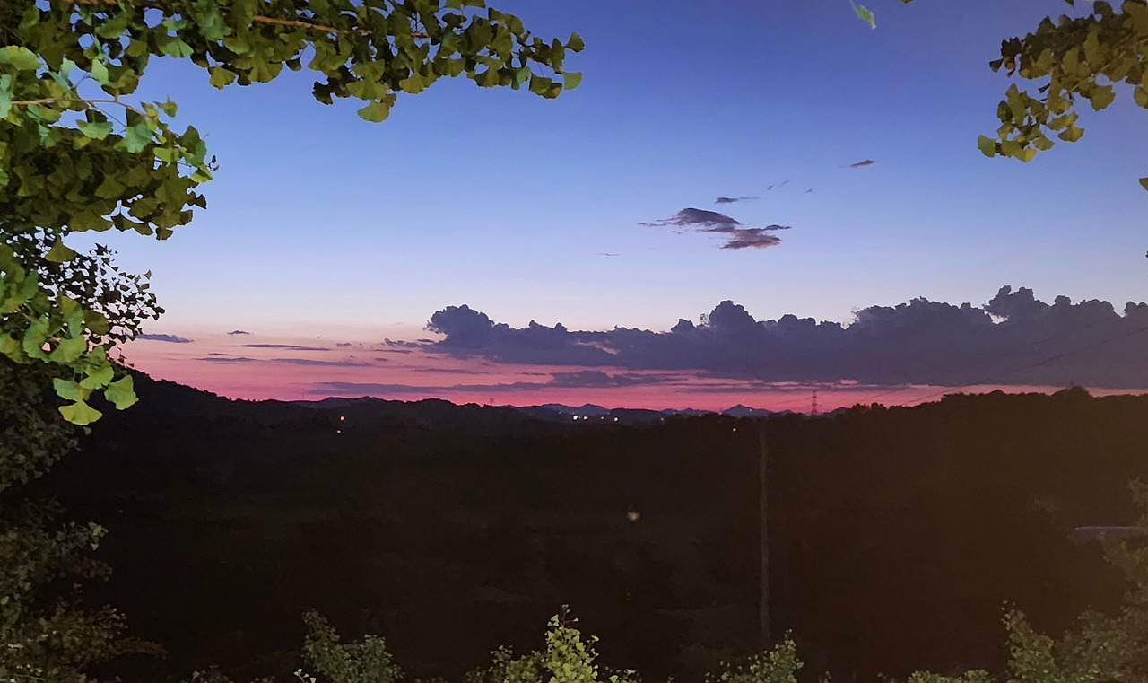 비가 많이 내려서 노을을 보진 못했다. 다만 번개가 많이 쳐서 무섭기도 했는데, 산 어귀에 송전탑이 있어서 걱정하지 말라고 했다. 송전탑이 무너지진 않을까 이제 와서 그런 생각이 든다.