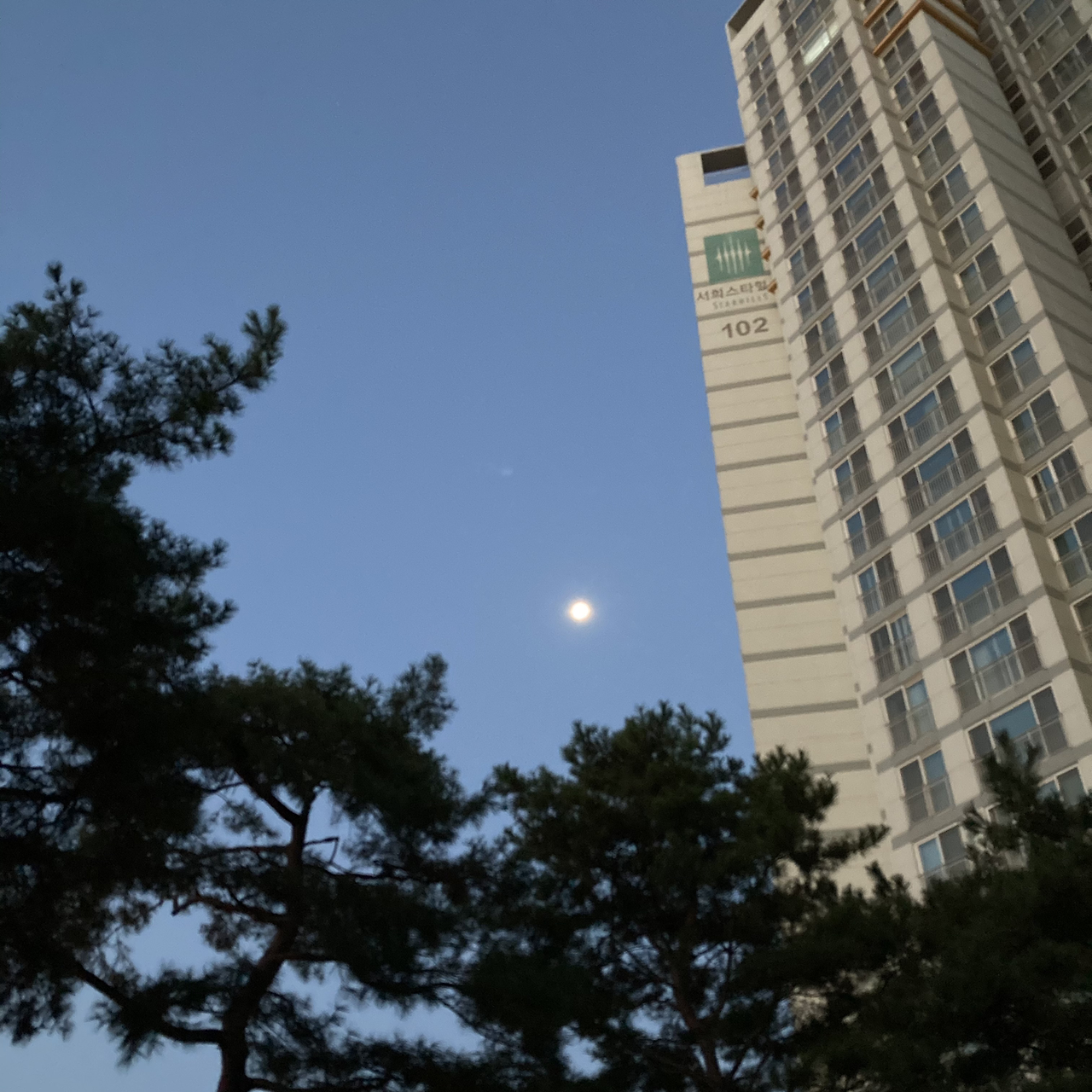 아침 6시가 조금 넘은 시간에는 노을과 비슷한 새벽빛이 따뜻하게 느껴졌는데, 오늘 아침은 달빛이 더 강하다.
