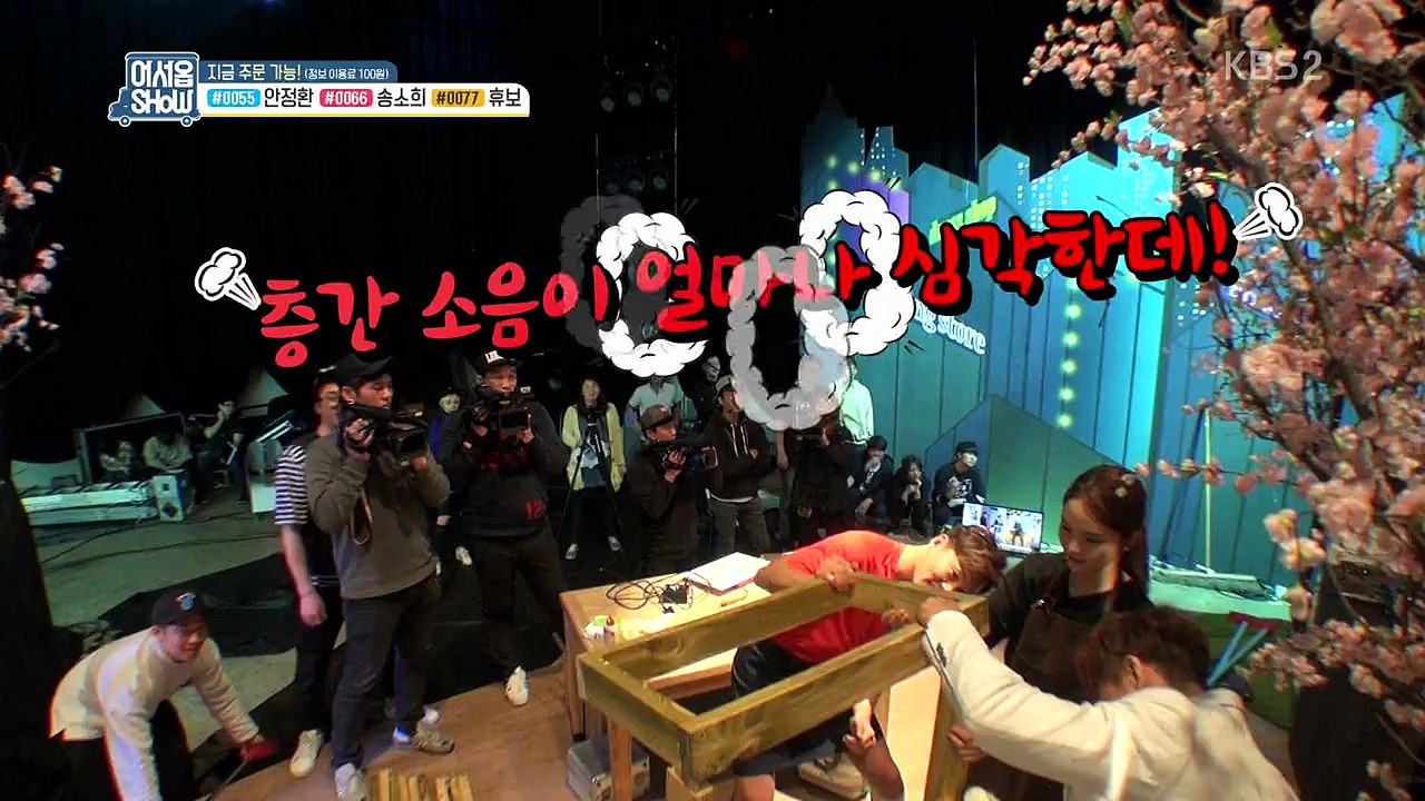 이러한 포맷 변경으로 제작진은 어떤 질감의 차이를 만들고자 했을까? 쇼호스트 체제를 가동하면 1인 방송의 한계를 보완할 수 있다. 혼자 채팅창 보고 이야기 하느니 둘이 있으면 토크를 하기 쉽다.(물론 <마리텔>이 혼자서만 방송하는 것은 아니다. 원론적으로 포맷이 지향하는 바가 다르다는 점을 염두에 두자.) 둘째 편성에 따른 순차 방송은 늘어지는 생방송의 한계를 극복하여 조금 더 알차고 타이트하게 꾸밀 수가 있다. 홈쇼핑 원형에도 더 가깝다. 생방송 중에 가장 밀도 높고 흡인력 있는 게 홈쇼핑 아닐까? 살까 말까 마음 졸인 사람이라면 누구나 이 말에 동의할 것 같다. 재능의 ‘기부’는 본질이 아니다. 사실 중요한 구심점이 되어야 할 부분이 장식으로 전락했다. 그럼에도 출연자의 재능 그 자체는 제대로 보여주어야 한다. <어서옵SHOW> 제작진은 작고 북적이는 스튜디오를 나오면 조금 더 다양하게 그리고 충분히 재능을 보여줄 수 있을 거라 판단한 듯하다. 야외 분량을 강화한다면 인터넷 생방에만 의지해야 하는 <마리텔>과는 다른 질감을 얻을 수 있을 거다.