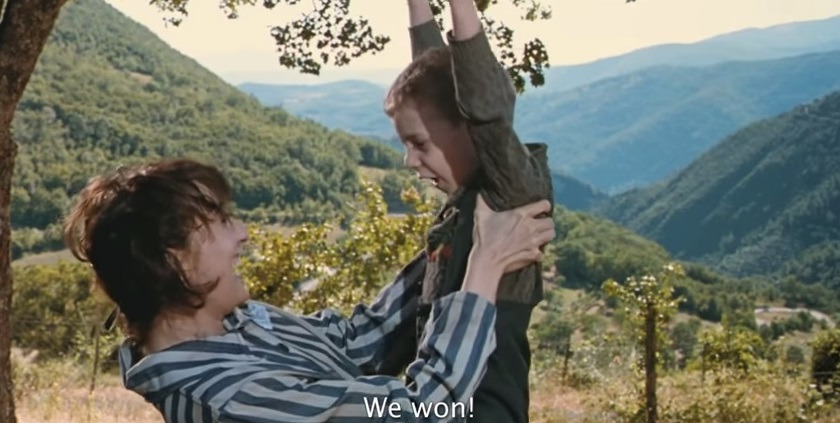 <인생은아름다워>는 2차 세계대전 당시 유태인 포로수용소에서 아들을 보호하려는 아버지의 감동적인 이야기를 담고 있다. 학살이라는 말을 아이에게 어떻게 설명할 수 있을까? 수용소에 끌려온 아버지 귀도는 어린 조슈아를 달래며 어른들이 노동하는 사이에 숙소에 잘 숨어있게 하기 위해 어린 아들에게 흥미로운 게임에 참여하게 되었다고 거짓말을 한다. 그는 울지 않고 배고프다고 조르지 않는 등 점수를 많이 따면 진짜 탱크를 선물로 줄 거라 말한다. 어린 조슈아는 게임에서 승리하기 위해 독일군을 피해 숨어 지내게 되는데, 한번은 조슈아가 귀도에게 그런 게임은 없으며 여기는 사람들을 죽여 비누를 만드는 곳이라는 말을 들었다고 말한다. 귀도는 사람을 비누로 만드는 게 말이 되냐고 익살스럽게 반문하며 그런 말에 속으면 게임에 지는 거라 타이른다. 너무 어이없는 학살의 참상이 오히려 아이를 설득하는 근거가 되니 아이러니가 아닐 수 없다. 그리고 참극을 받아들이면 정말 우리의 삶은 끝이라는 점에서 게임의 룰은 어린 조슈아만 지켜야 하는 것은 아니다.
