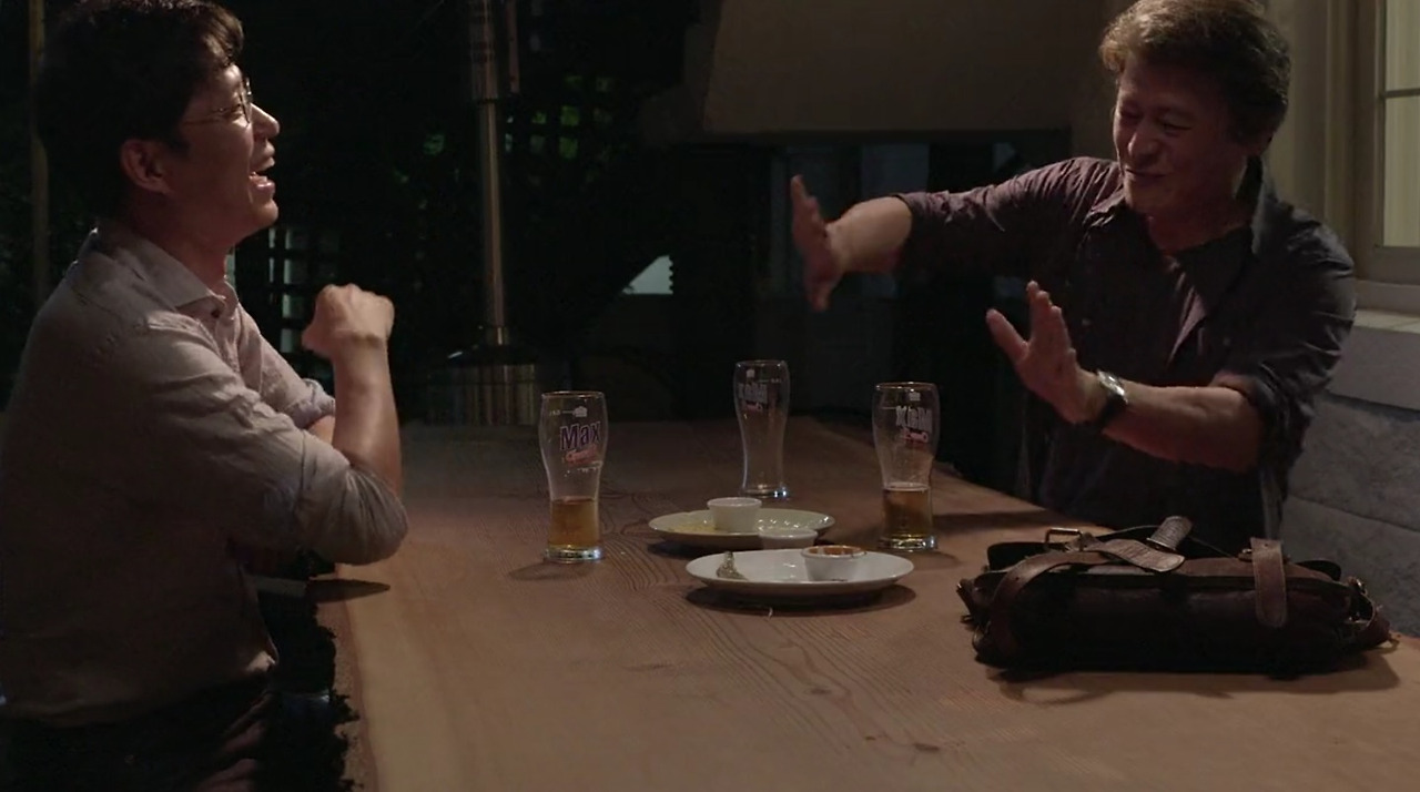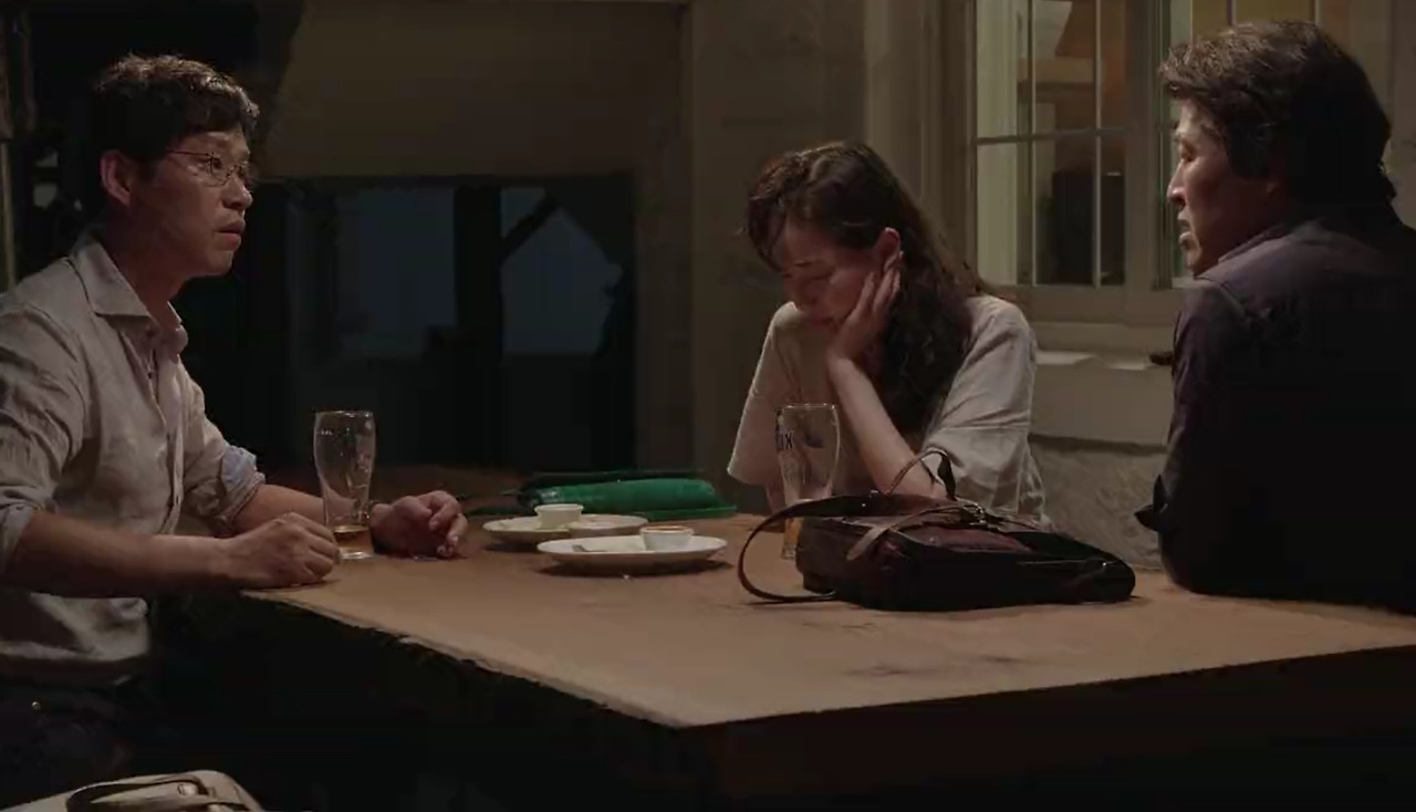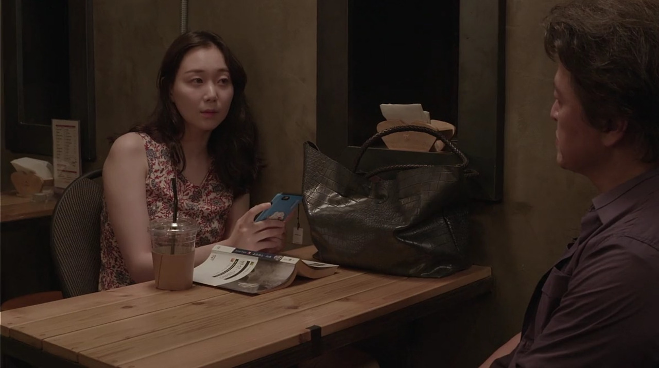 후반부에 가서 민정은 상원(유준상)과의 술자리에서 결별한 재영(권해효)과 우연하게 다시 마주친다. 그때 그녀는 또 다시 재영을 모른다고 거짓말을 늘어놓아 관객을 아연실색하게 한다. 영화를 보는 순간에는 혹시 상원을 만났던 여자는 민정이고 재영이 만났던 건 민정의 동생일 수 있지 않을까? 의문을 품을 수 있다. 그렇다고 해도 재영이 삼자대면에서 ‘당신 나 알지 않냐’고 했을 때 아니라고 답할 수는 없다. 재영은 논리적으로 민정과 민정의 동생을 모두 만난 것이니 그녀는 재영을 모른다고 할 수 없다. 이 순간은 민정의 사기 행각이 명명백백 해지는 결정적 장면이다.