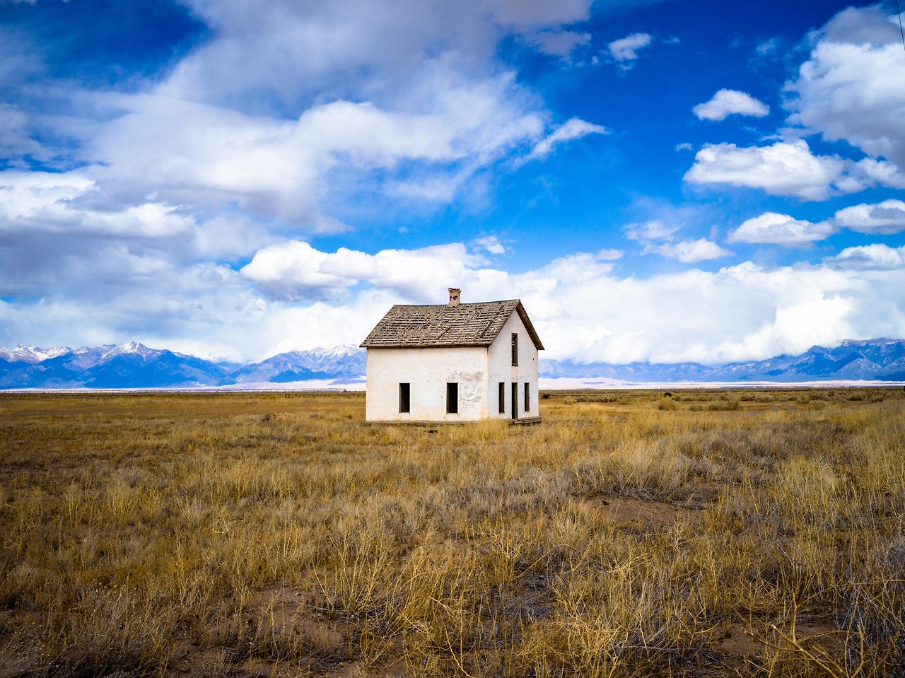 허허벌판에 있는 사진 속 집은 가는 전깃줄을 통해 외부의 소식도 자신의 소식도 전달하고 받기도 하는 유일한 선이다.