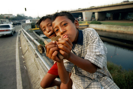 호텔을 벗어난 길가에는 거리에서 구걸을 하거나 차 유리를 닦아주거나 노래를 불러주고 돈을 받는 아이들이 있다.