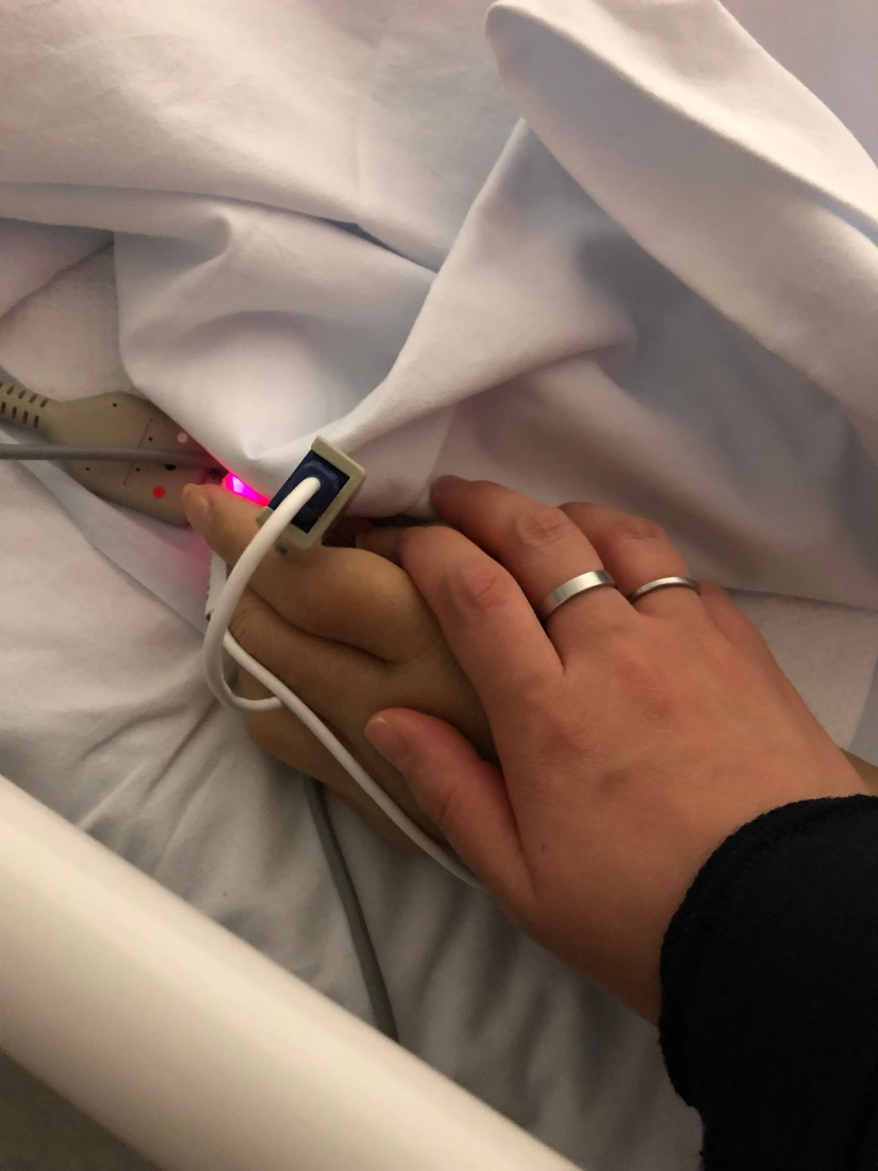 감사하게도 나와 동생에게는 임종 면회가 한 번 더 주어졌다. 첫 번째 면회 이후로는 거의 모든 시간 동안 우리는 병원 1층 로비에서 대기하고 있었다. 언제 전화가 올지 모른다는 불안감에 집에 갈 수도, 밥을 먹으러 갈 수도 없었기 때문이었다. 그러자 담당 선생님께서 혹시 면회를 할 다른 가족들이 가까이에 있으면 부르라 하셨고, 마침 로비에서 대기하고 있던 나와 남동생이 아빠를 한 번 더 볼 수 있게 되었다. 그렇게 나와 동생 각각 두 번씩 아빠와 마지막 인사를 나누었다.