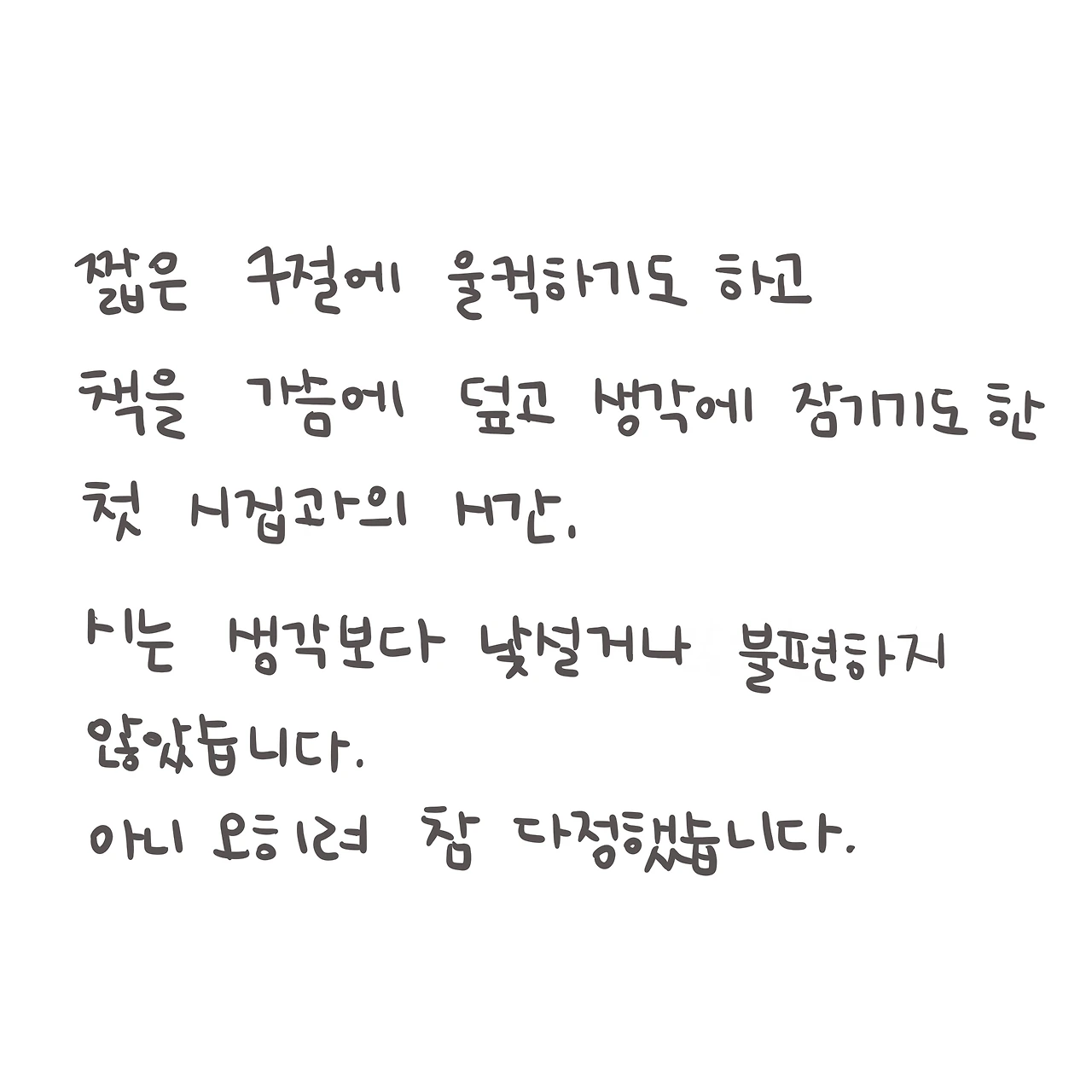 나는 그 뒤로 물리치료를 받듯 시집을 샀다. 응급실 수준으로 마음이 고될 때는 인터넷으로 다급하게 시를 찾아 읽었다. 감정이 깊게 패여 입원이라도 할 판이다 싶으면 사랑하는 시들을 손으로 받아 적는다. 그리고 예외없이 위로를 받는다. 원래 인생은 고되기도 한 거지, 하고.