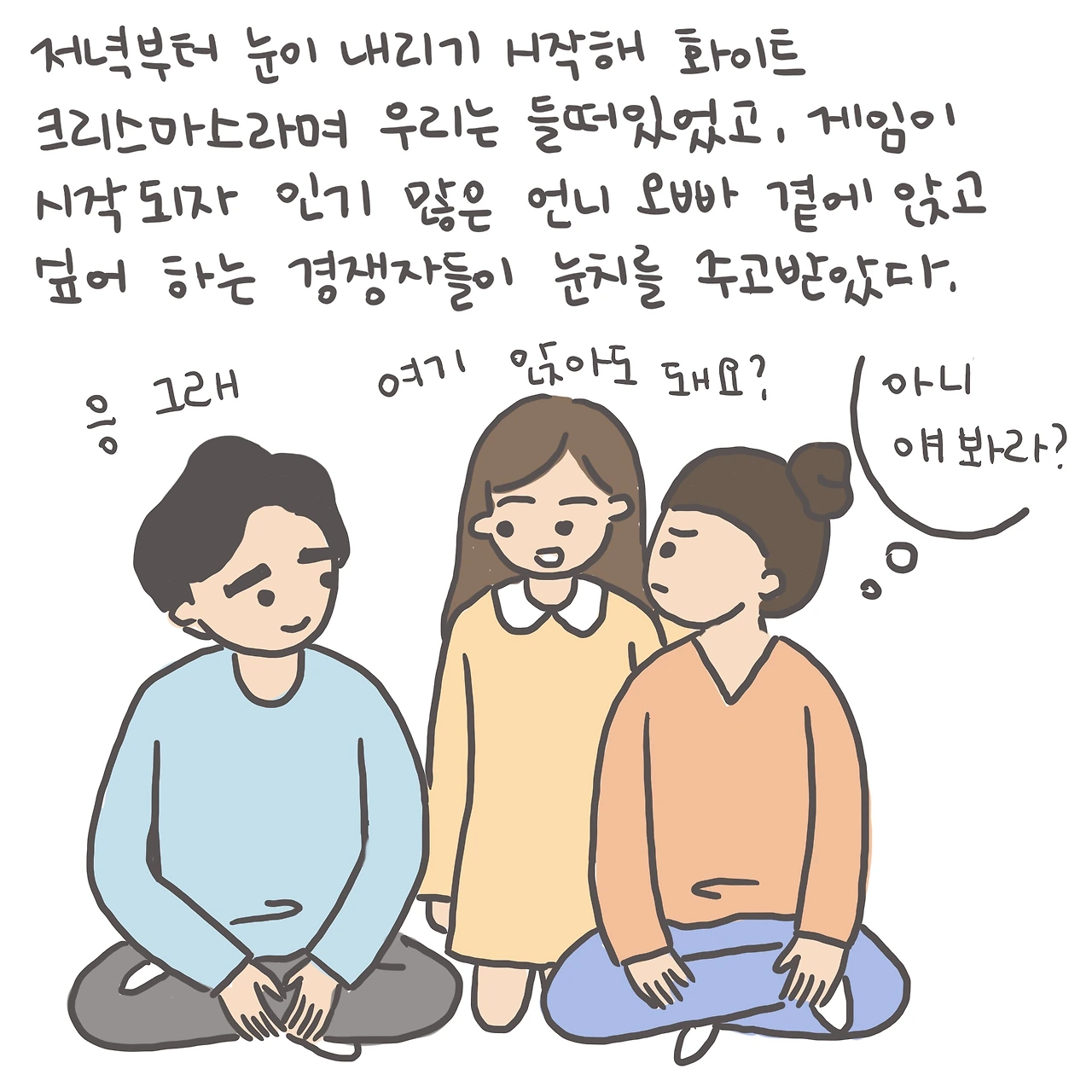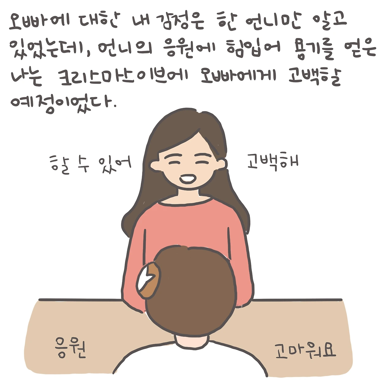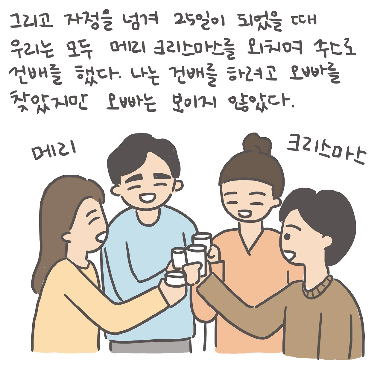 ‘저 때문에 고생이 많으시죠? 다음엔 영어공부 많이 해서 올게요…’ 나의 부족함을 인정하자 마음이 뜨끈하게 차올랐다. 선배는 ‘괜찮다’고 했다. ‘영어는 공부하면 돼. 하지만 공부하지 않아도 이미 잘하는 게 너에게 많거든. 잊지 말라고.’라고도 해주었다. 그것이 내가 받은 그 해의 크리스마스 선물이다.