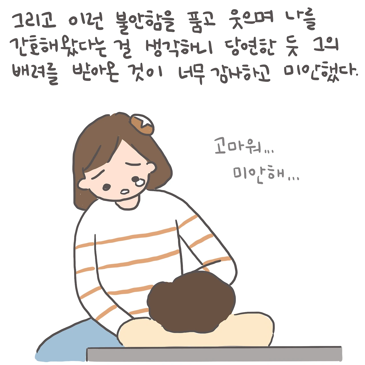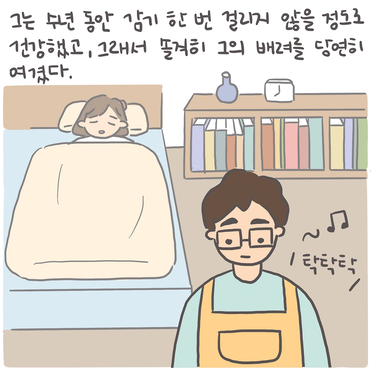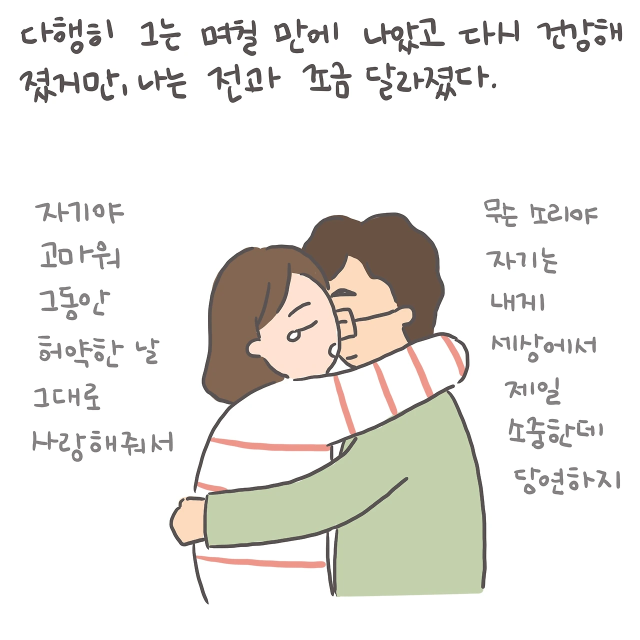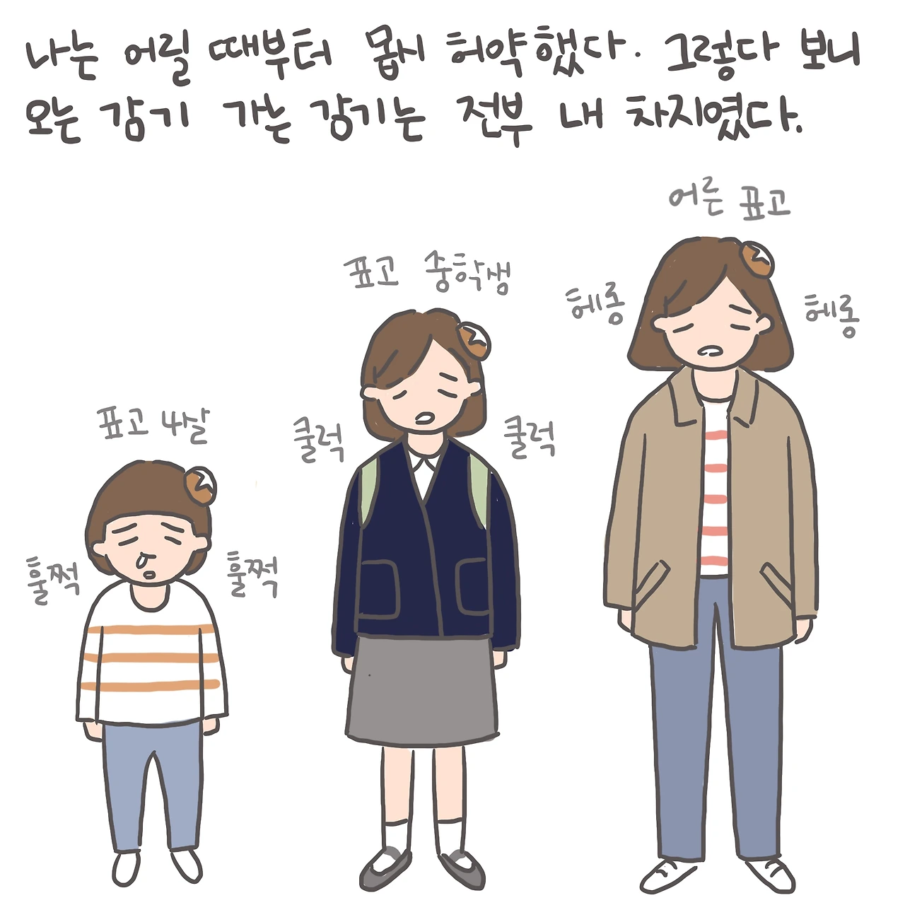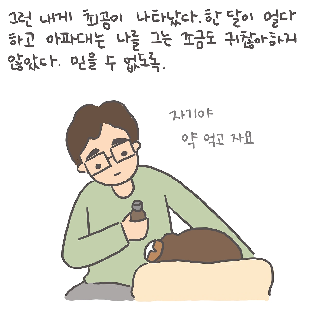 이제 나에게 감기란 최선을 다해 피해야 하는 것이다. 가족의 안위가 내 건강에 달렸다는 사실도 실감한다. 그러므로 친애하는 부모님들, 어떻게든 잘 먹고 잘 잡시다. 건강합시다!