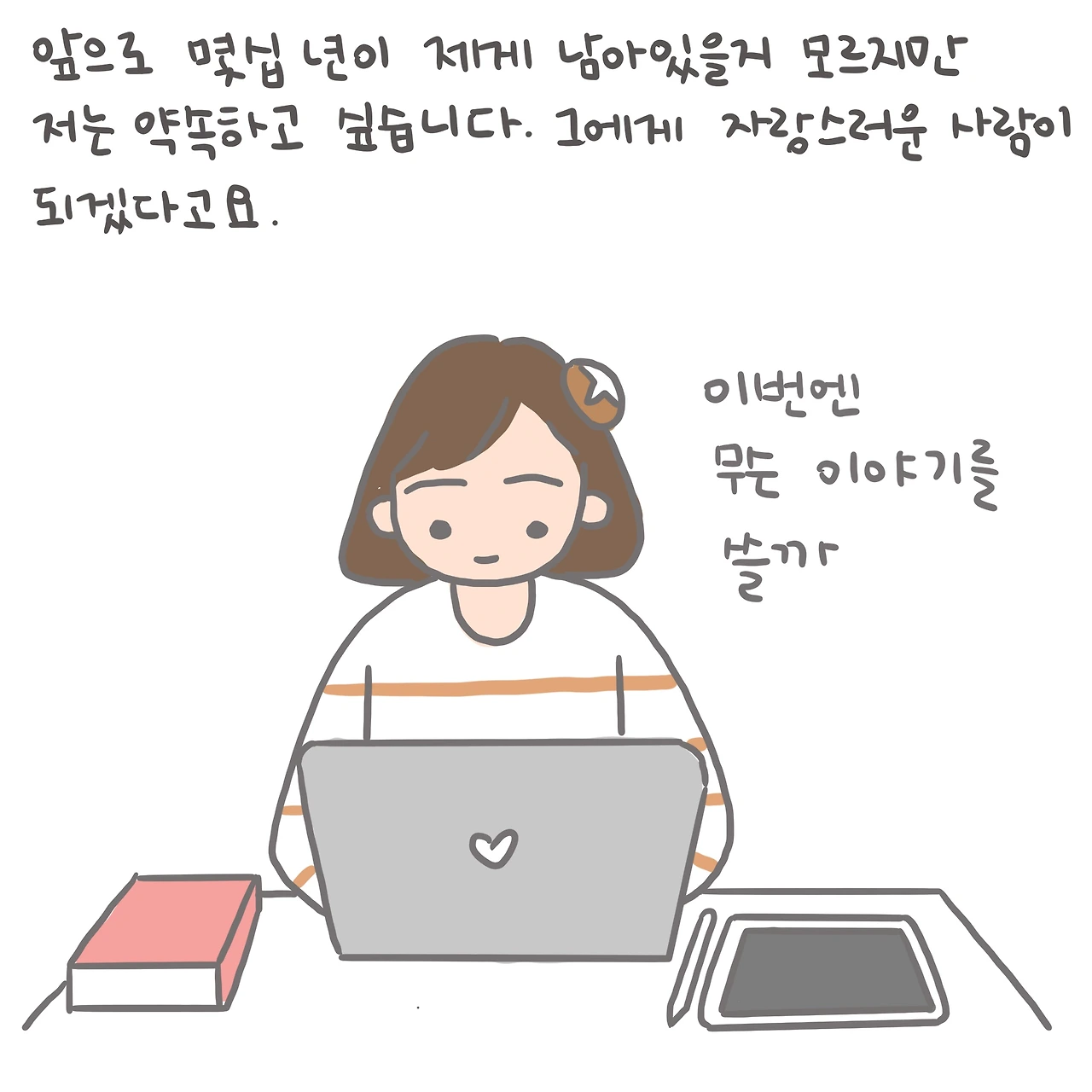 누구도, 자신을 포함한 그 누구도 나를 깎아내리지 않도록 지킬 것. 있는 그대로의 나로 살기란 참 이상하게도, 생각보다 어렵다. 그래서 좀 더 적극적으로 자신을 보호하기로 나와 약속했다.