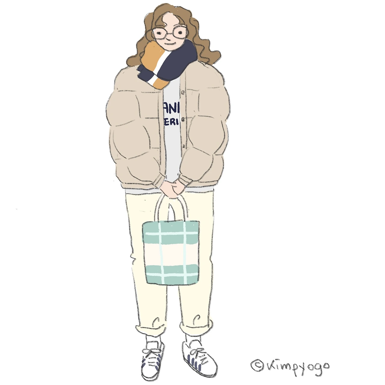 마지막은 색상을 전반적으로 상큼하게 쓴 착장입니다. 숏패딩은 모양 자체가 경쾌한 느낌이 있어서 검은색이라도 가오나시 같이 보이지는 않지만 밝은 톤을 입으면 화사함이 배가 되는 거 같아요. 핑크나 블루 같은 색상도 겨울 외투가 많다면 도전해볼 만 하지만, 기본템으로 마련하시는 거라면 밝은 베이지색이 스타일링하기 어렵지 않아서 추천드려요. 베이지색은 모든 색을 은은하게 받쳐주기 때문에 위처럼 크림색 바지와 입어도 튀는 느낌이 없거든요. 청바지나 면바지와 입으면 경쾌하게, 슬랙스와 입으면 단정하게 연출되는 마법의 색상이 베이지색이니, 숏패딩을 하나 구입하려고 계획하신다면 베이지색을 꼭 고려해보시길 바랍니다. ^ㅡ^