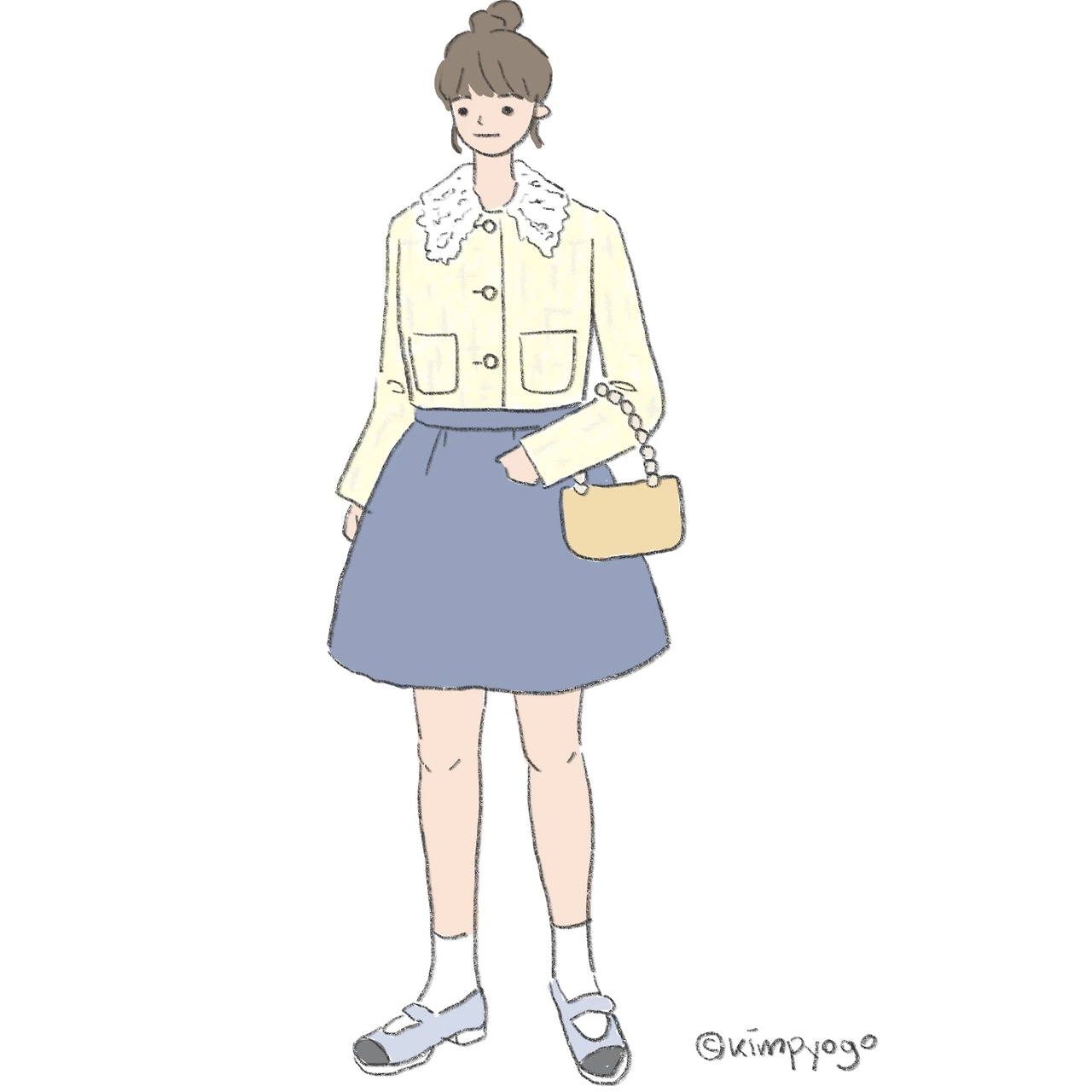 아마 80년대 생이신 분들이라면 기억하실 텐데요. 영화 '클루리스'에서 주인공이 내내 Young & Rich 콘셉트의 옷을 잔뜩 입고 나왔었지요. 그 영화를 2022년 스타일로 리메이크한다면 위의 그림처럼 입으면 딱일 거 같아요. 미니 원피스로도 입을 수 있는 기장의 롱 트위드 재킷을 경쾌한 컬러의 반바지와 매치하고 굽이 있는 로퍼에 반스타킹을 매치해 스쿨걸 느낌도 한 방울 톡! 20대로 돌아간다면 도전해보고 싶은 룩입니다. 헤헷
