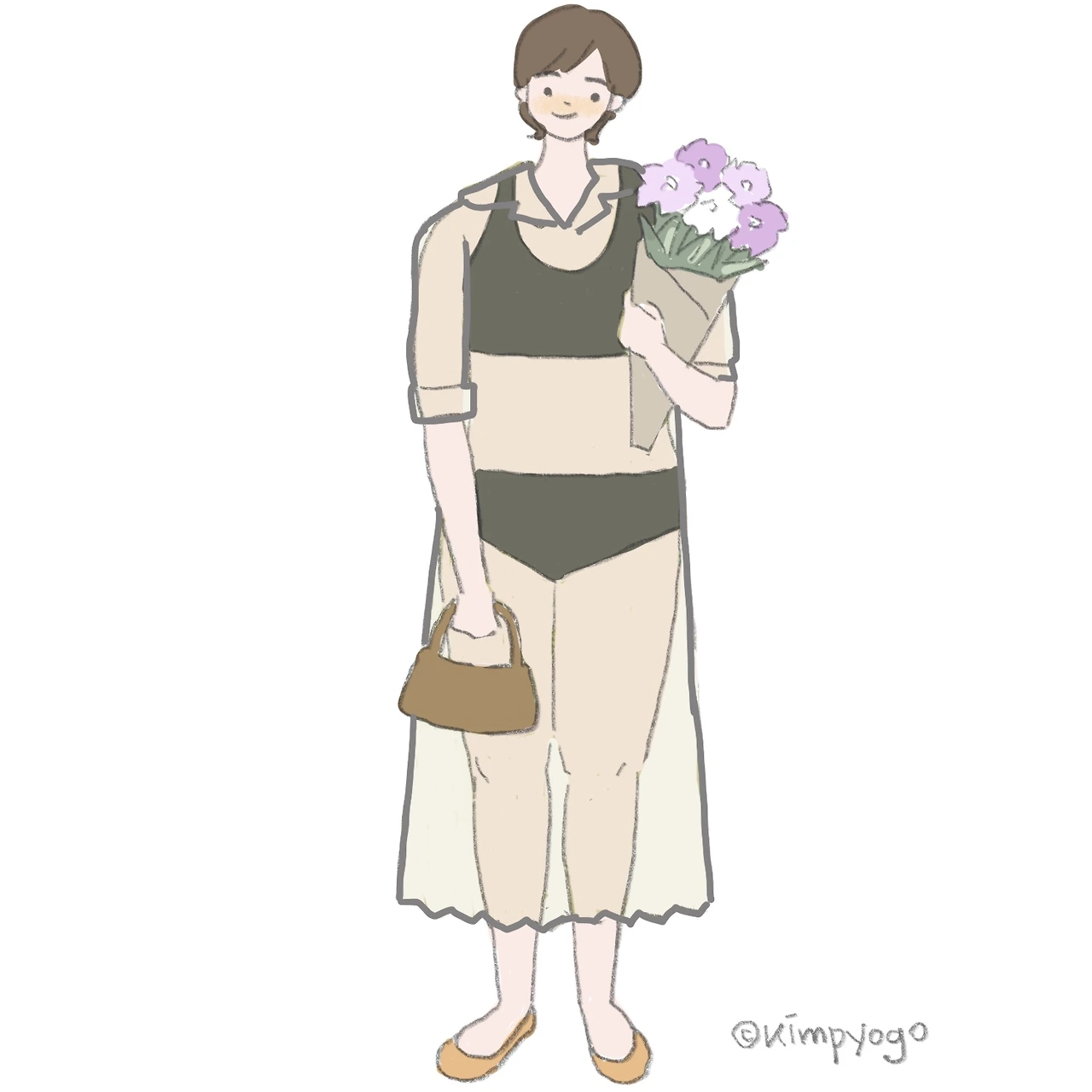 가려진 부분을 보이도록 하면 이런 느낌인데요, 하체가 통통하신 분은 허리선이 높게 디자인되어 허리선부터 봉긋하게 A라인으로 떨어지는 디자인을 고르시는 것을 추천드립니다. 이런 디자인이 엉덩이 부분이 타이트하게 붙지 않아서 상체의 날씬함만 강조되거든요. 허리는 가늘고 허벅지부터 통통하신 분들은 허리를 좀 더 쏙 들어가게 강조한 실루엣을 입으시는 것도 좋습니다.