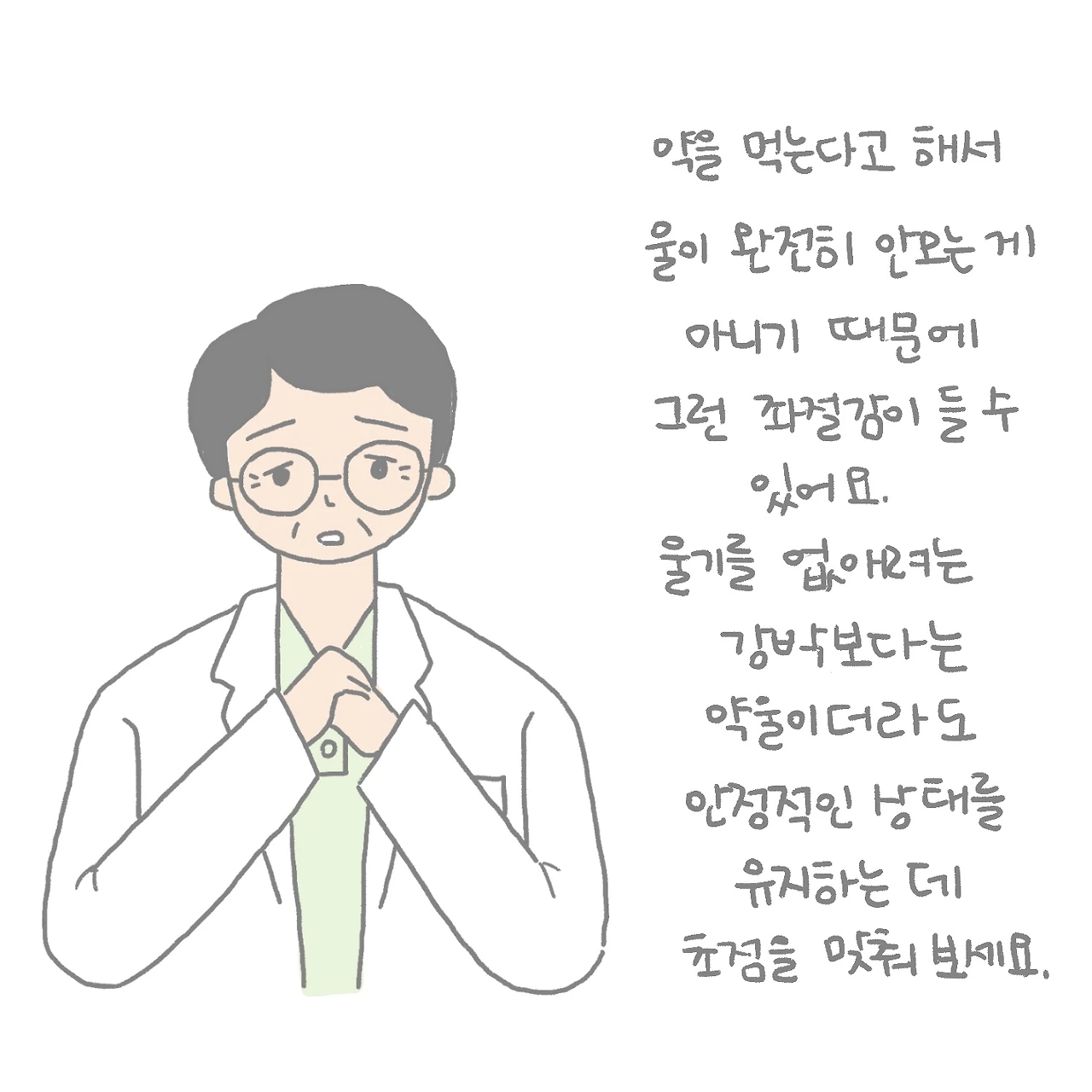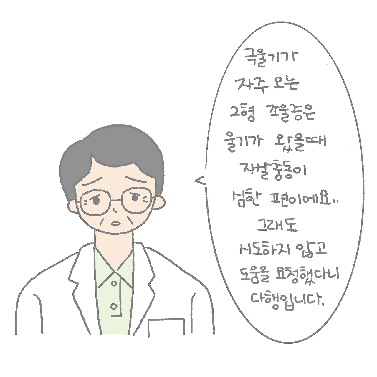 약을 몇 번이나 바꾸면서 부작용이 제일 적은 약을 찾으려고 노력해왔는데 부작용이 줄기는커녕 평생에 서너 번 겪었던 지독하게 깊은 울이 또 왔다는 게 너무 화가 났습니다. 그렇다 보니 내 병이 조울증이 맞는지조차 의심스러웠습니다. 부작용을 피하려고 다른 걸 선택하면 또 다른 부작용이 기존의 부작용을 밀어내고 제 일상을 장악해버리는 악순환.. 영원히 끝나지 않을 거 같았습니다. 하지만 치료를 포기하고 다 그만두겠다고 하면 일단 멈추지 않는 구토가 계속될 것이 무서웠습니다. 일단 다른 것보다 구토를 멈출 수 있다면, 조울증을 치료하는 건 천천히 생각해도 될 거 같았습니다.