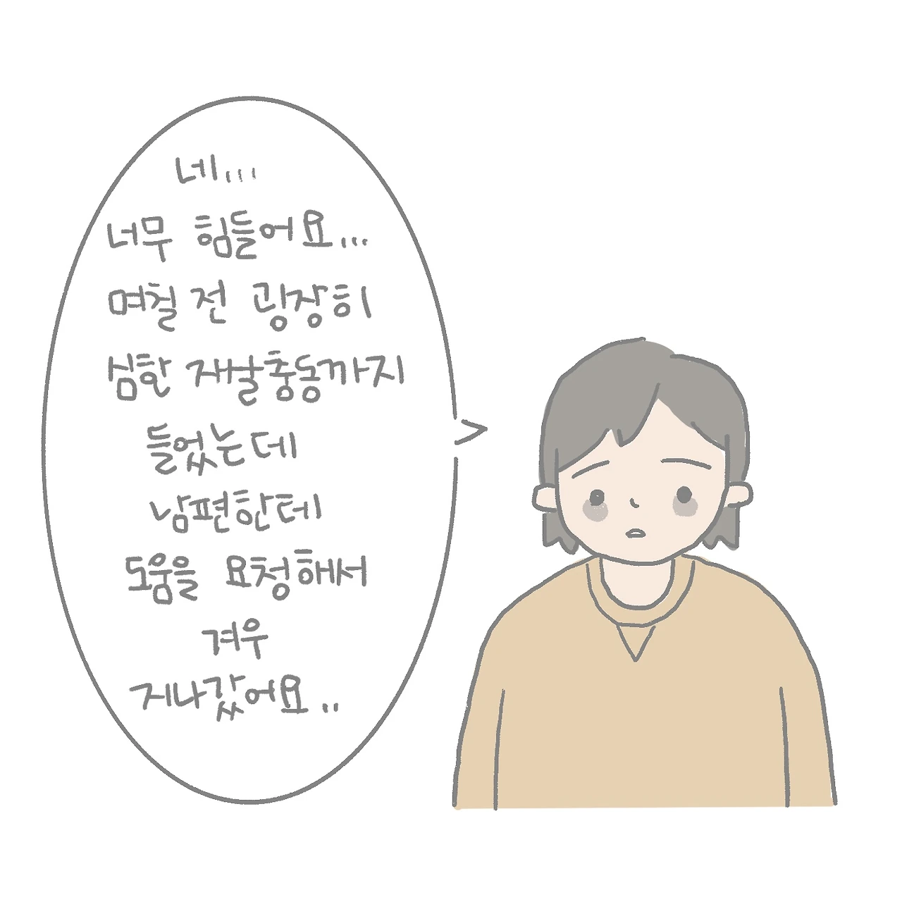 모든 것을 내려놓고 약을 털어 넣으려고 했을 때, 제가 너무나 사랑했던 할머니가 차갑게 변해 영안실에 누워계셨던 모습에 오열했던 내가 떠올랐습니다. 그리고 내가 이렇게 나를 포기한다면 영안실에 있는 나의 모습이 남편에게 지우지 못할 상처로 남을 거 같다는 생각이 들었습니다.